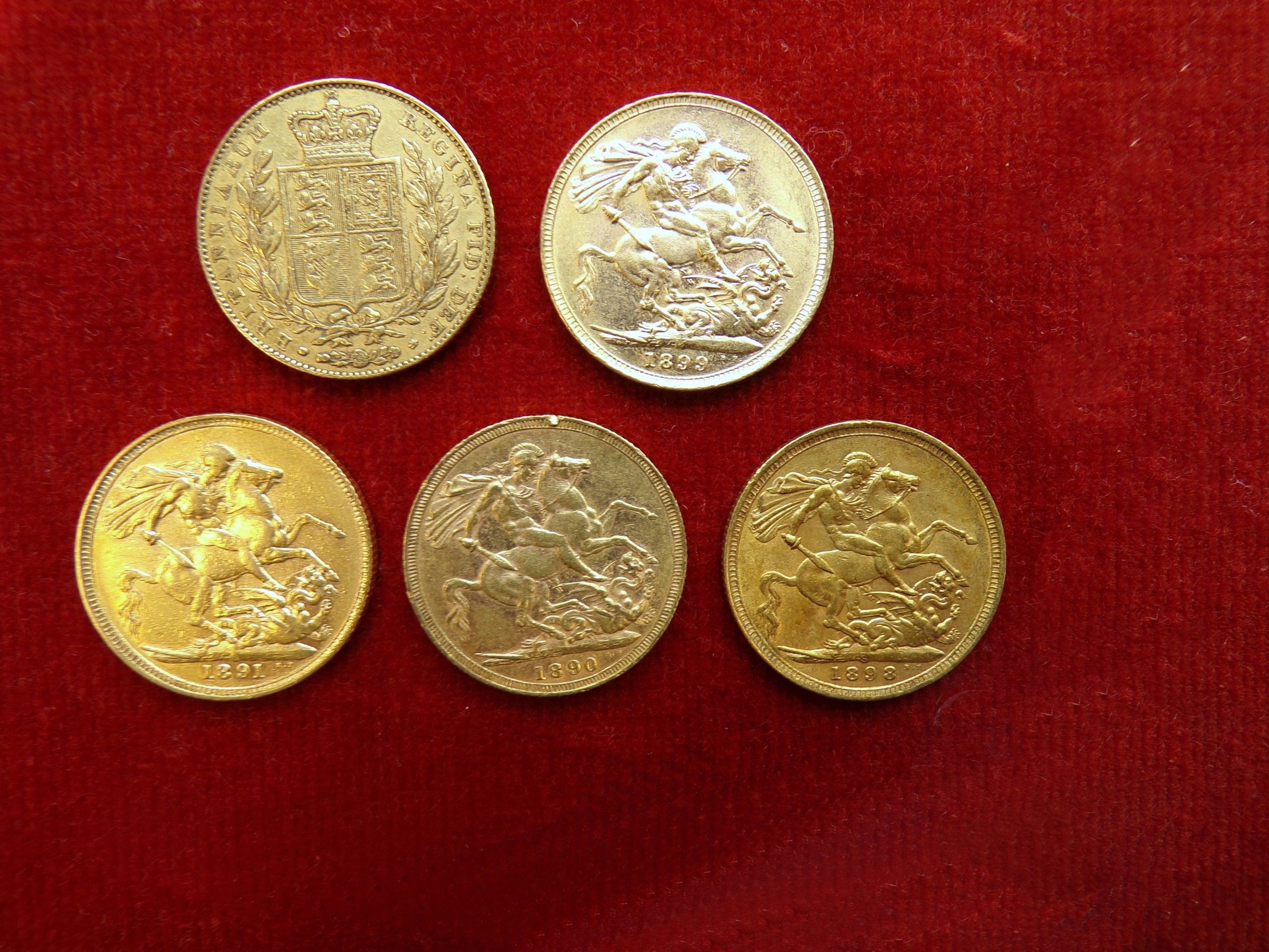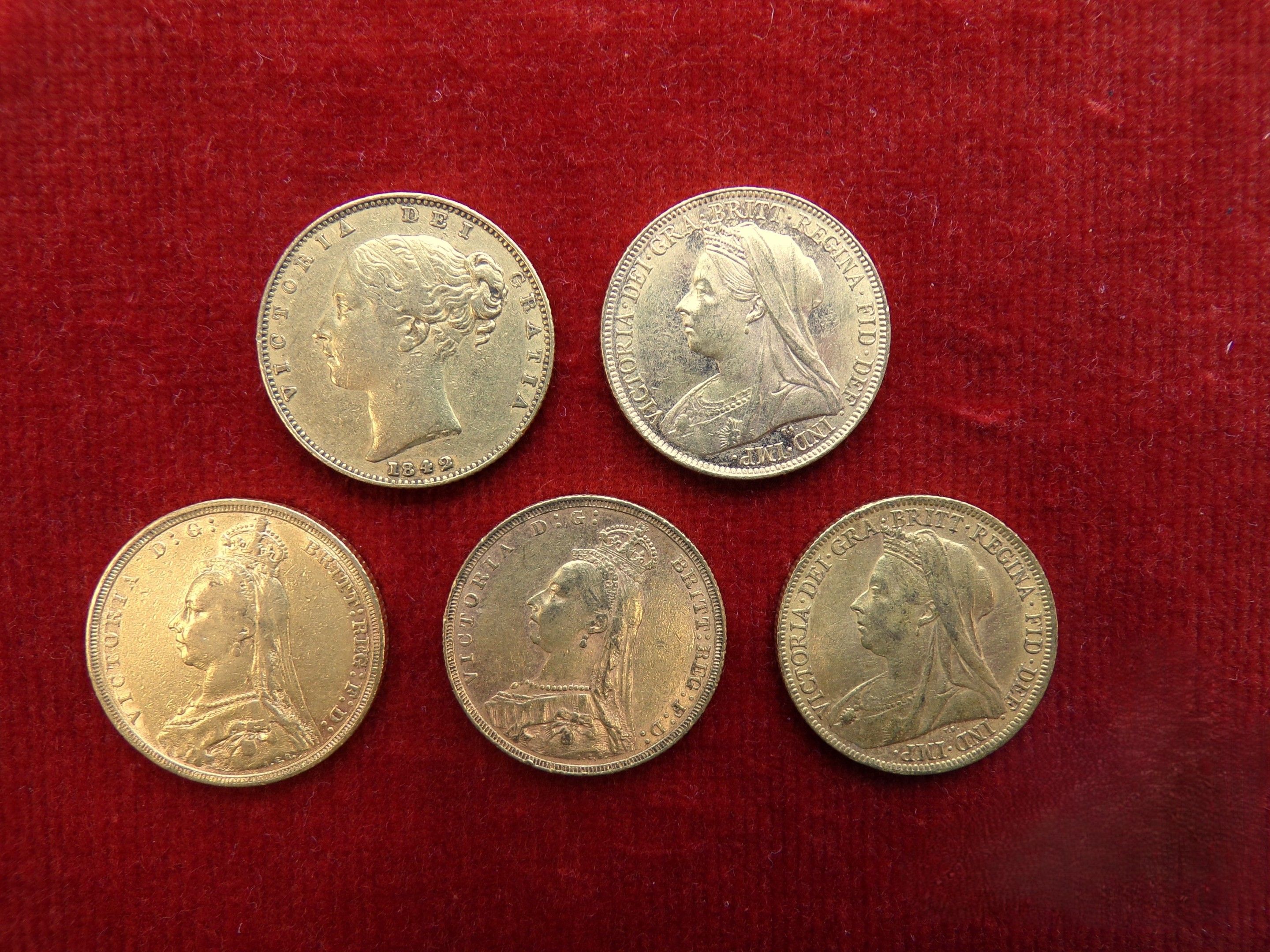 GREAT BRITAIN and Commonwealth: Lot of 5 Victoria Gold Sover…