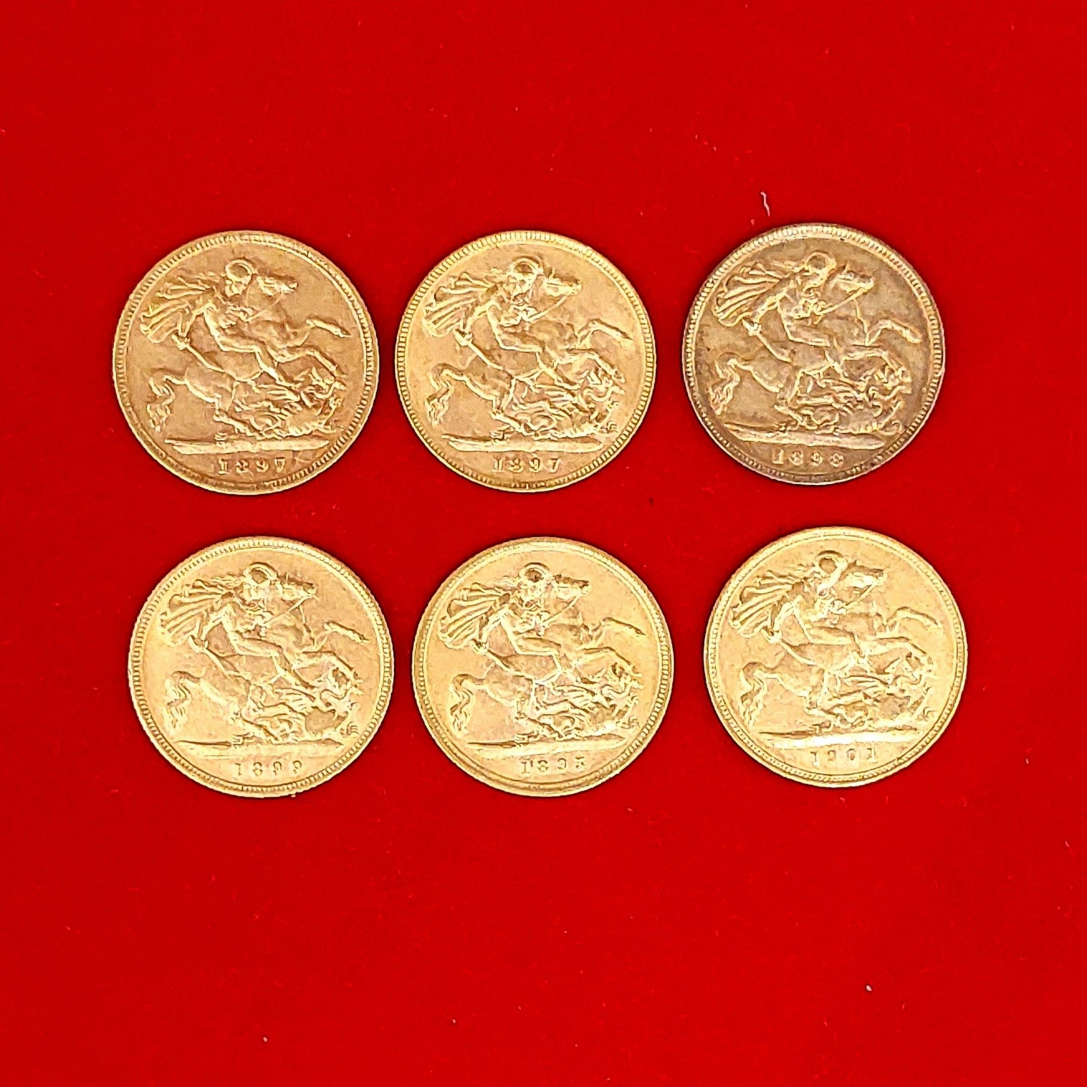 GREAT BRITAIN and Commonwealth: Lot of 6 x ½ Victoria Gold Sovereigns. Various dates and workshops. VariousStates