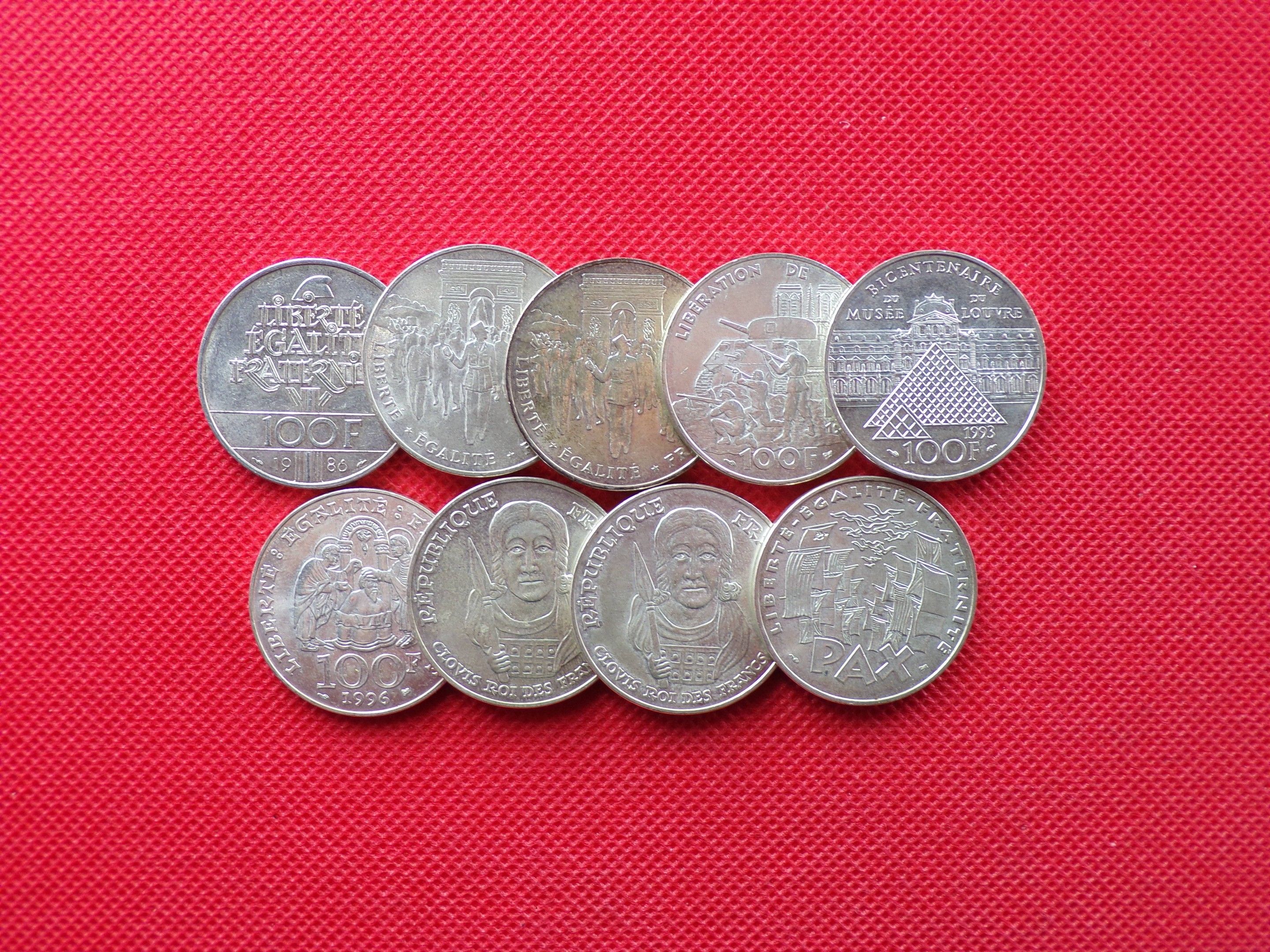 Lot of 9x100 Silver Francs various :1986, 1993, 1994(3), 199…