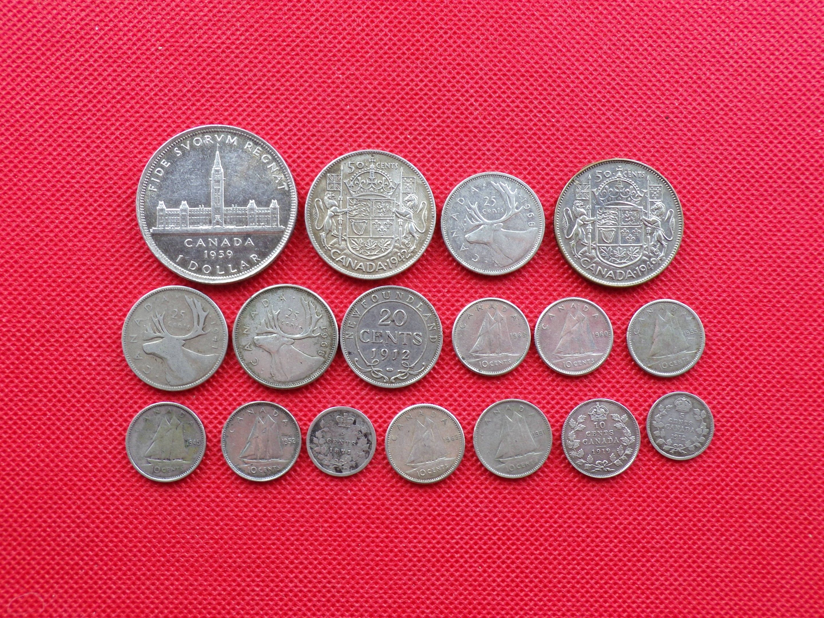 CANADA: Lot of 17 various silver coins. Weight of the lot about 89g. To be sorted. ConditionVarious