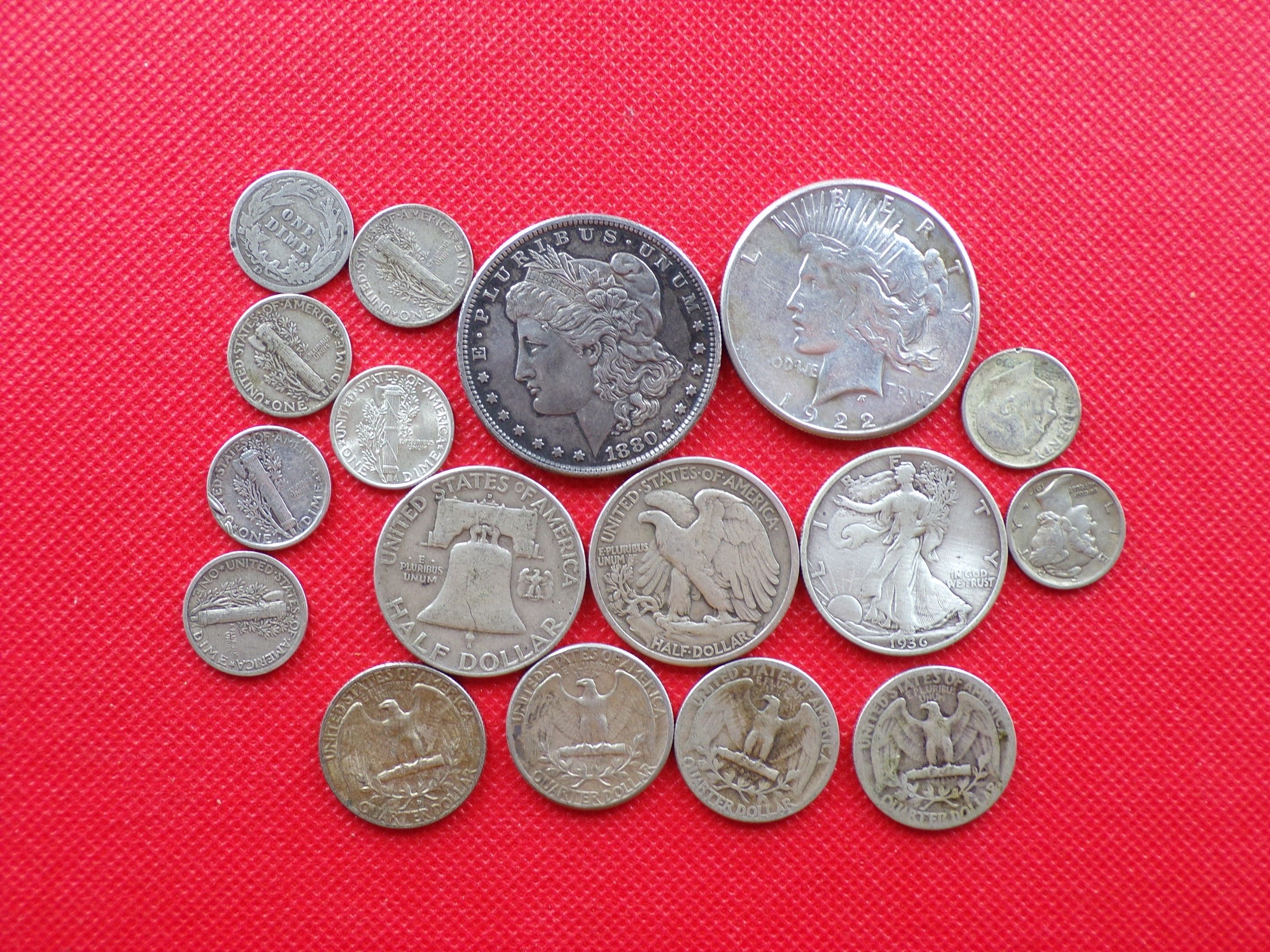 UNITED STATES: Lot of 17 silver coins including Dollar 1880 and 1922 San Francisco etc Weight of lot 135g. ConditionVarious