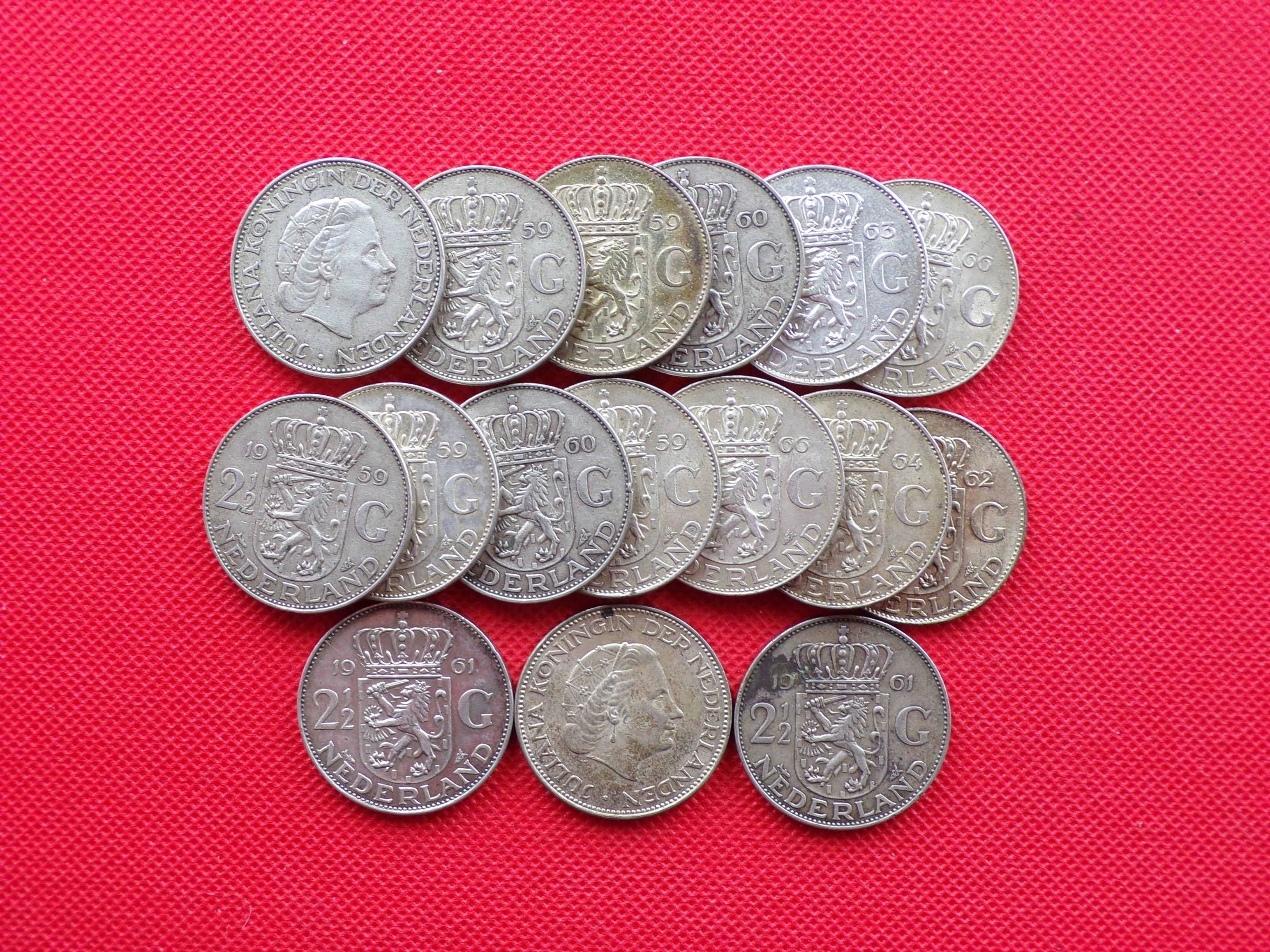 NETHERLANDS: Lot of 16x2 ½ silver Gulden. Years 50/60. Weight of the lot about 240g.TTBandSUP