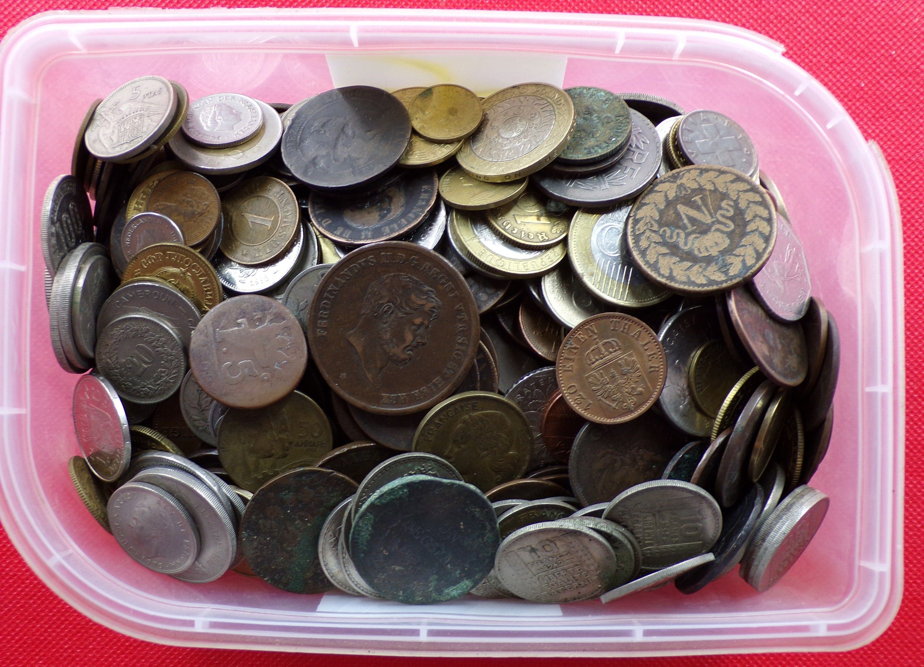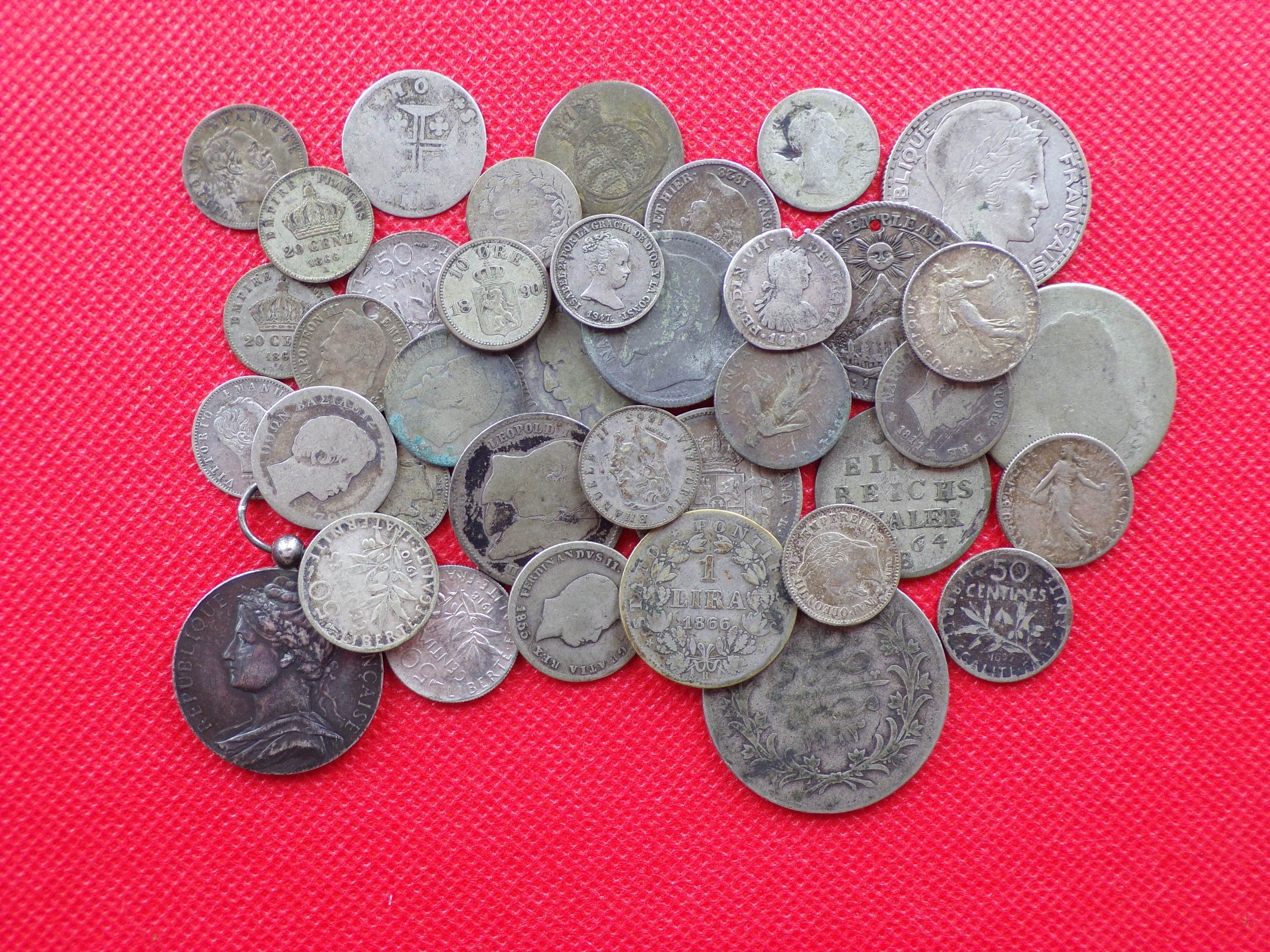Lot of 38 various silver coins (± 120g). Attached are 4kg of World Coins in various metals and of various periods. ConditionVarious