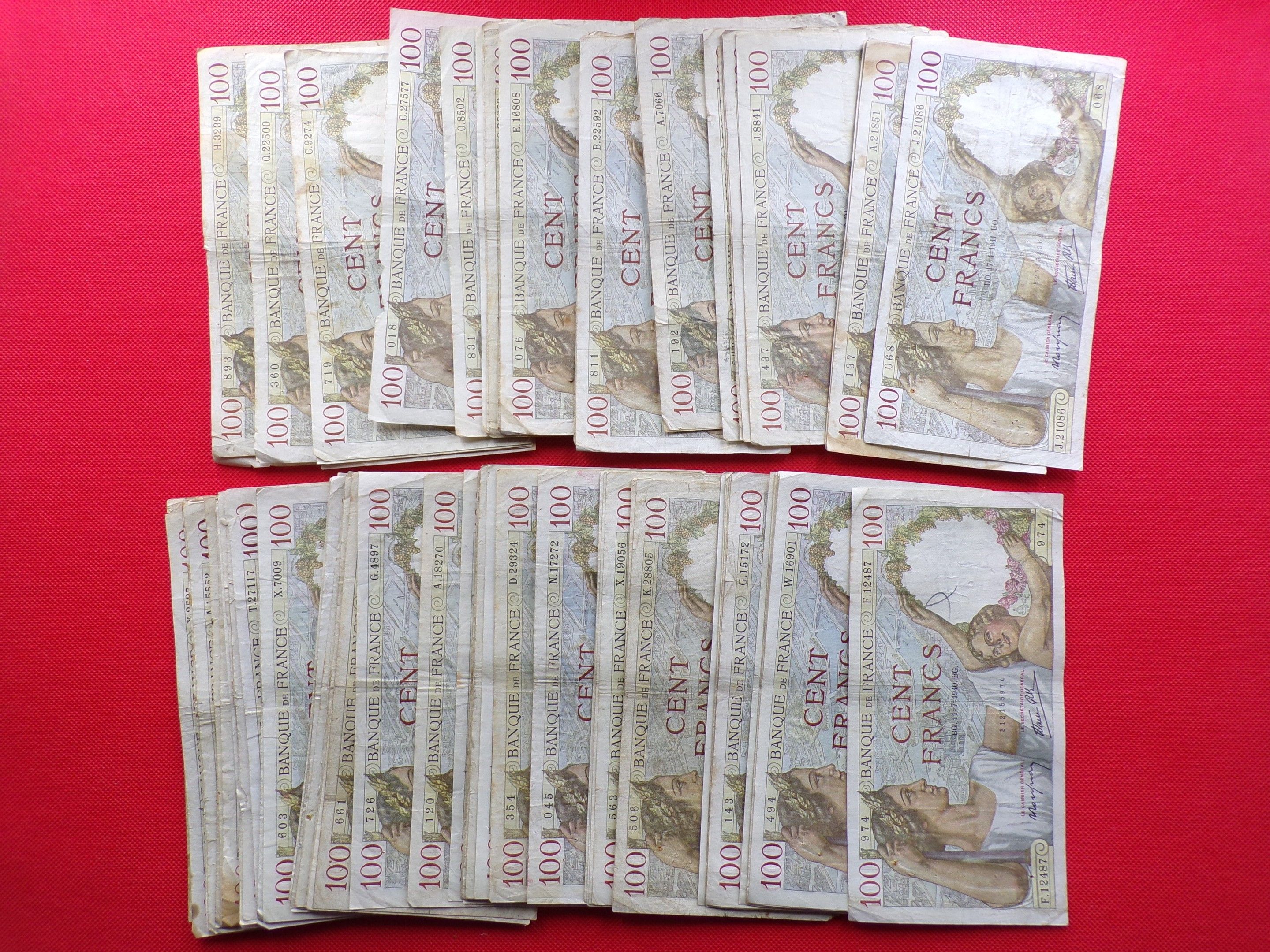 Lot of 105x100 Francs "Sully". Various dates.