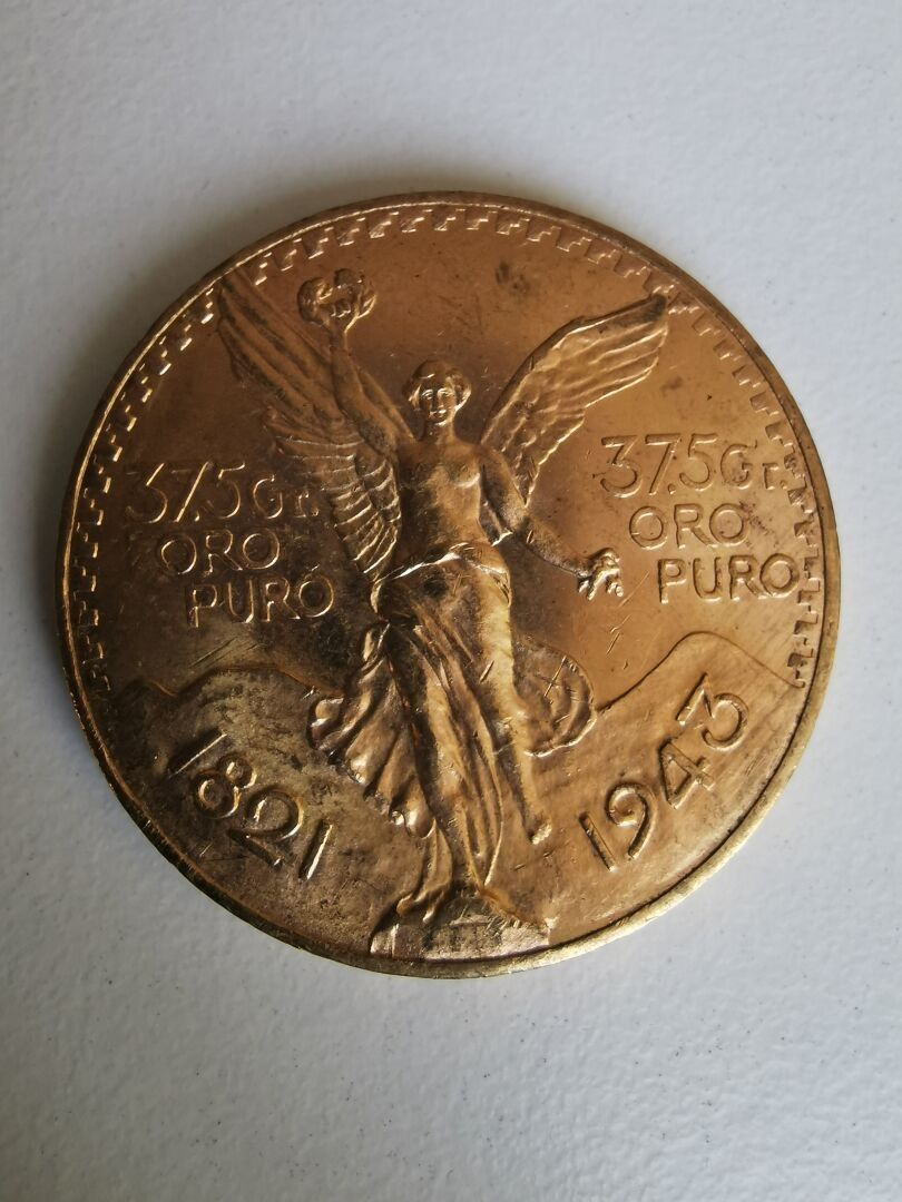 50 Mexican pesos in gold 900 mil.1821-1943 from an estate, sold by designation, kept in a safe-deposit box at the bank, not visible in the study -H