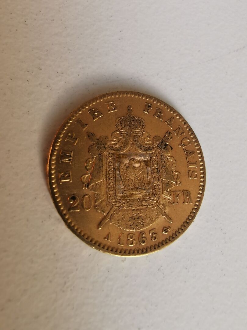 1 Gold coin of 20 Francs Napoléon 1863 Tête laurée - following an inheritance, sold on designation, kept in a safe at the bank, not visible at the study -.