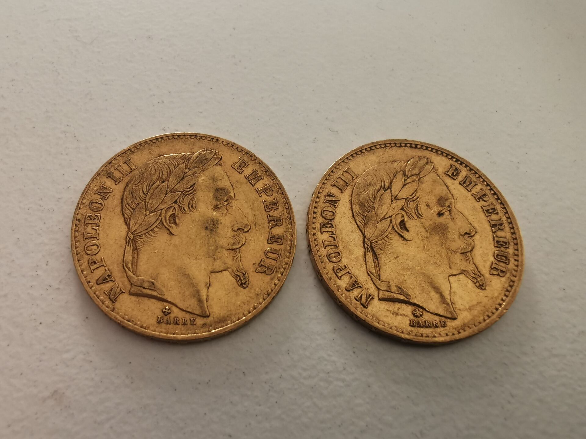 2 Gold coins of 20 Francs Napoléon 1868 tête laurée - follow…