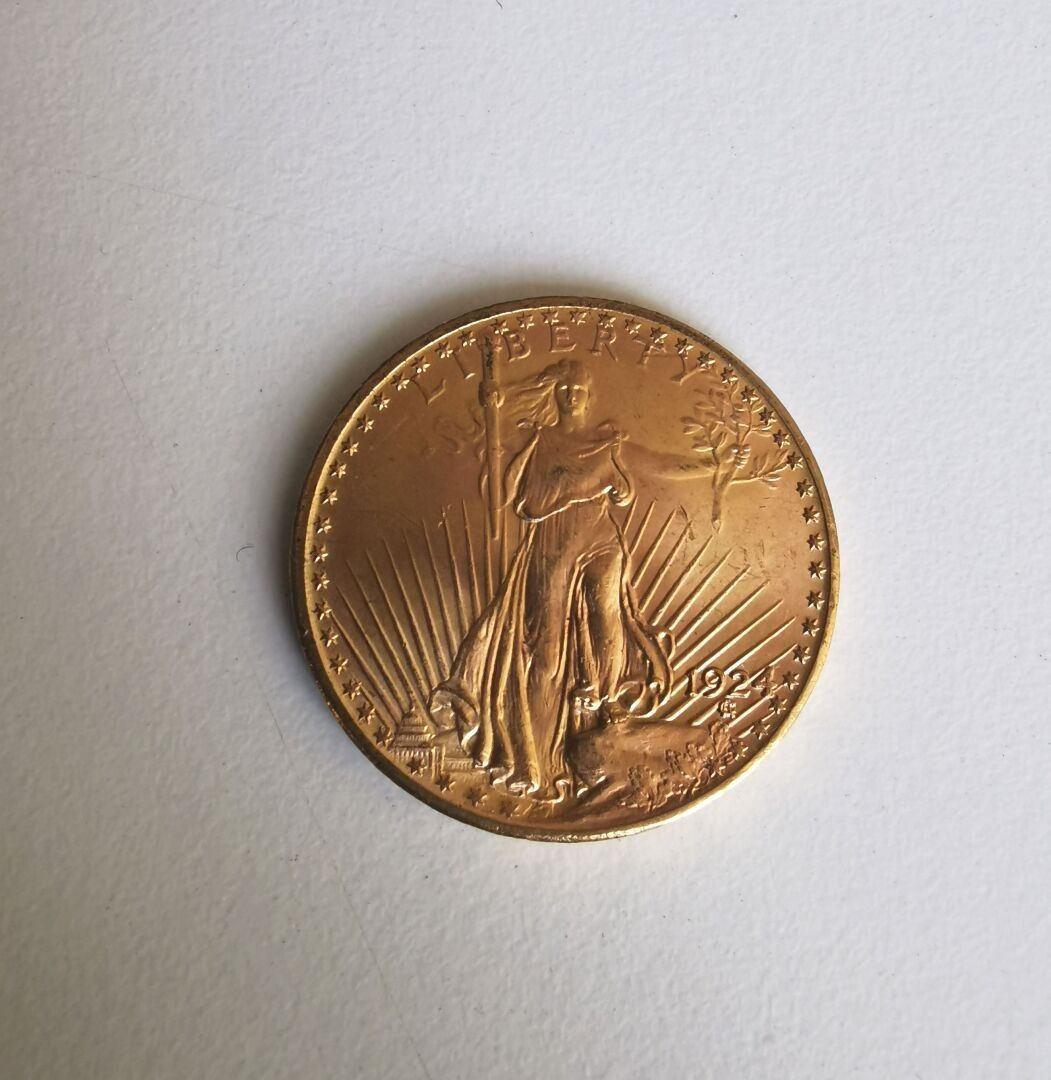 1 $20 gold coin "Eagle" 1924 -Weight: 33.5 g Estate lot, sold by designation, kept in a safe-deposit box at the bank, not visible at the auction.