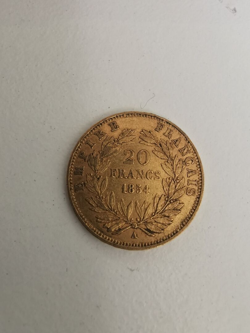 1 Gold coin of 20 Francs Napoléon III 1854 Tête nue - following an estate, sold by designation, kept in a safe at the bank, not visible at the auction house.