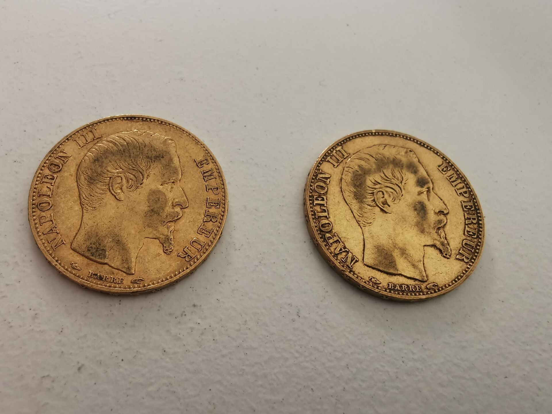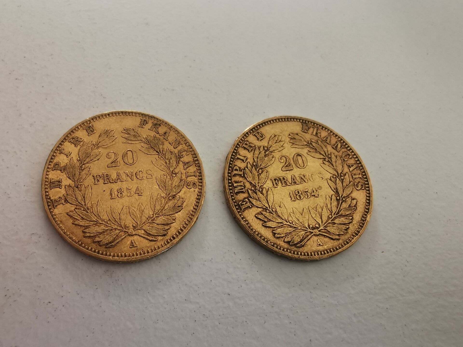 2 Gold coins of 20 Francs Napoléon III 1854 Bare head - foll…