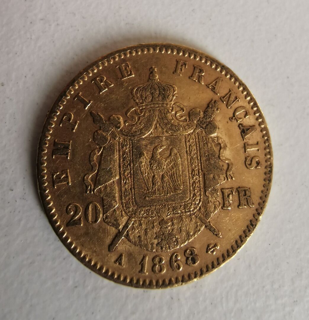 1 Gold coin of 20 Francs Napoléon 1868 Tête laurée - following an inheritance, sold on designation, kept in a safe at the bank, not visible at the study -.