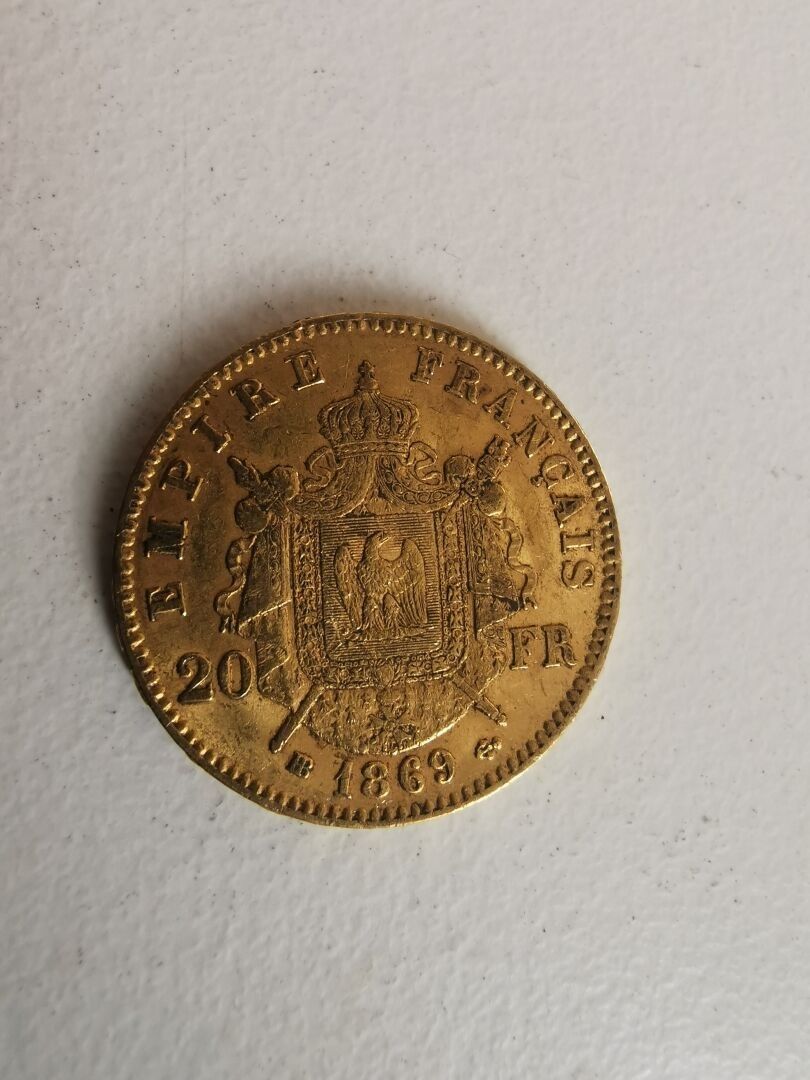 1 Gold coin of 20 Francs Napoléon 1869 Tête laurée - following an inheritance, sold by designation, kept in a safe at the bank, not visible at the study -.