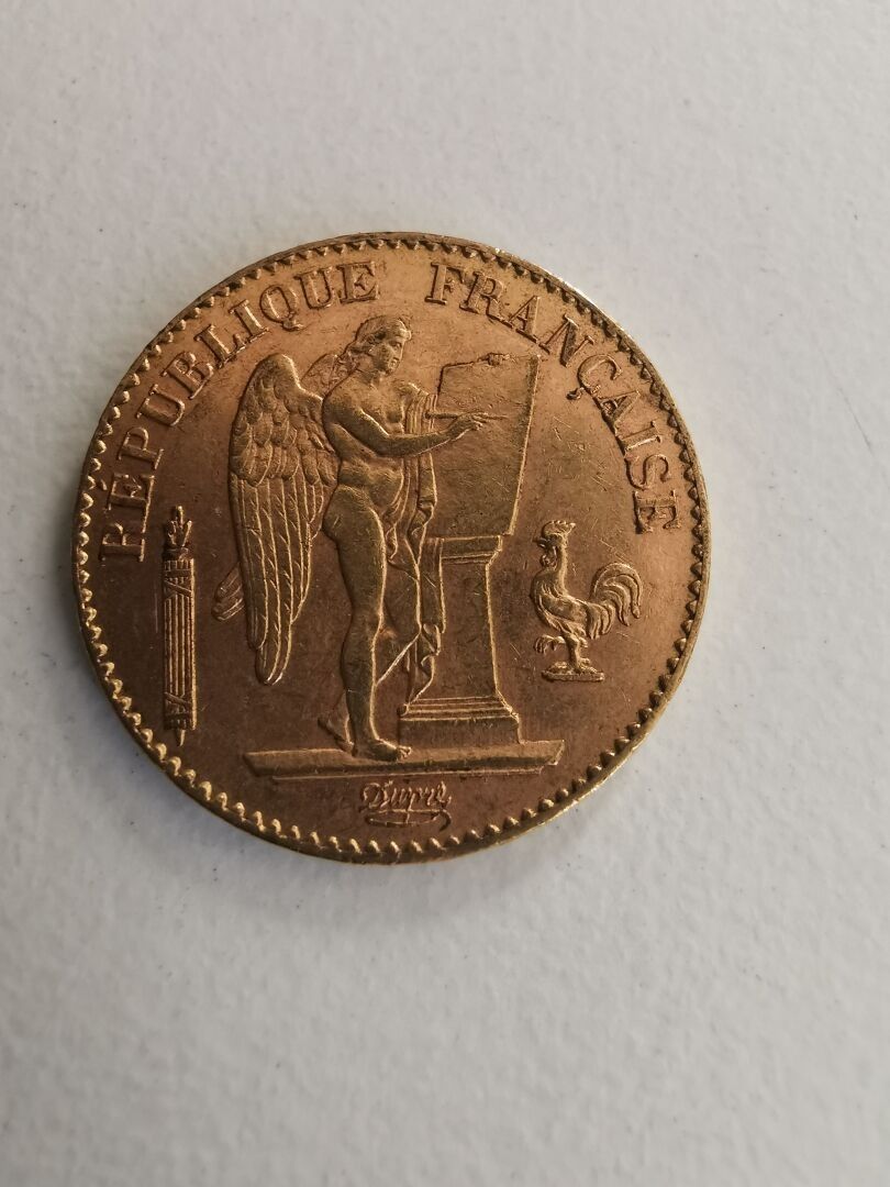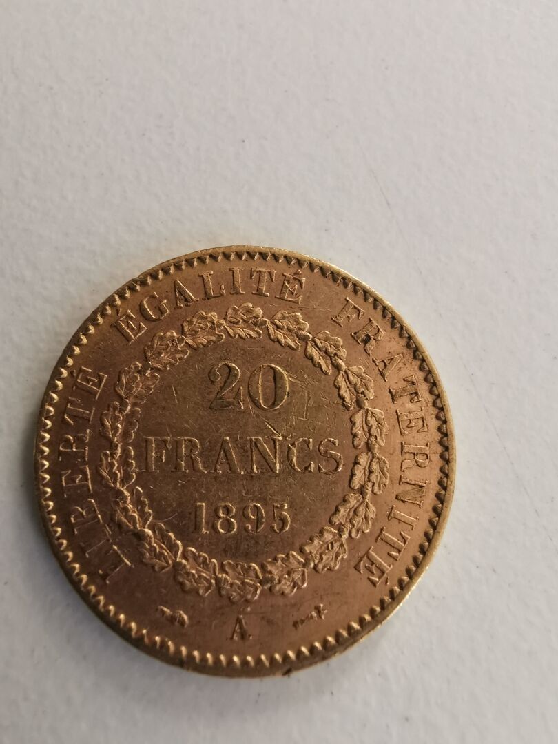 1 Gold coin of 20 Francs au Génie 1895 - following an inheritance, sold on designation, kept in a safe at the bank, not visible at the study - The coin is made of gold.