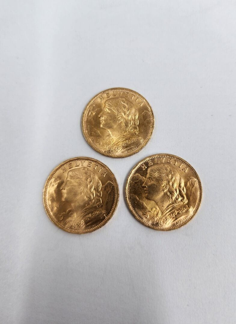 3 pieces of 20 Swiss francs gold - 1935 - following an inher…