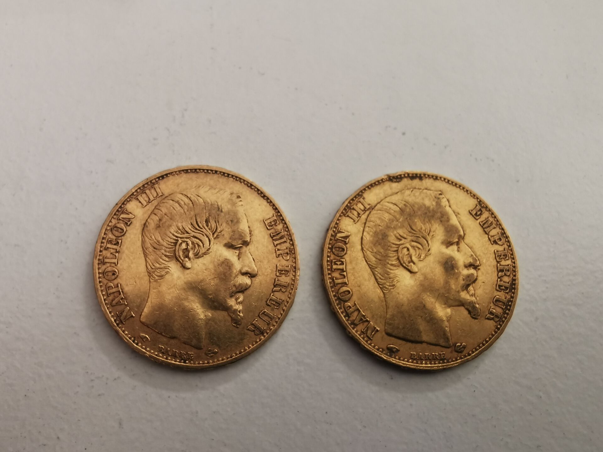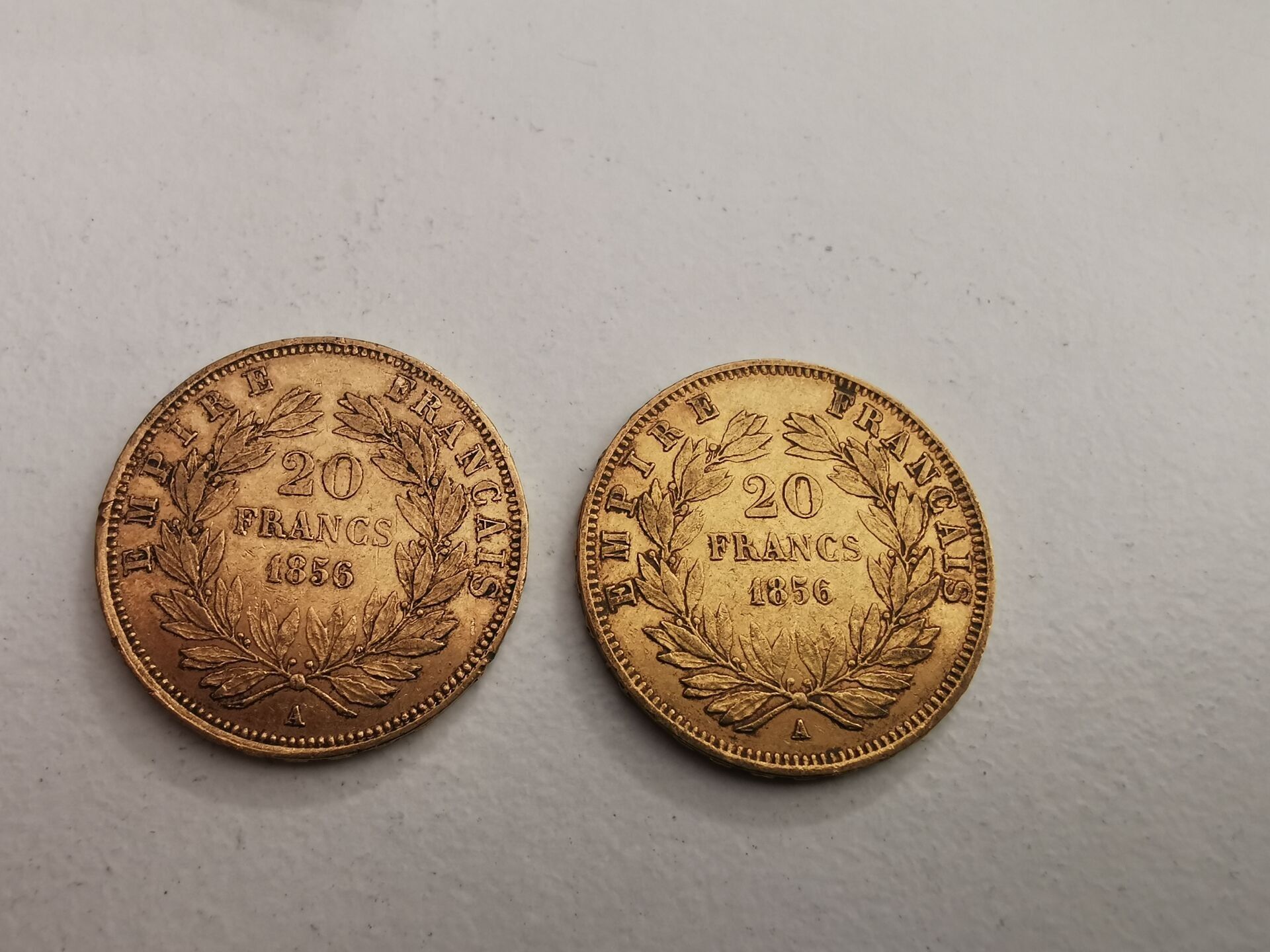 2 Gold coins of 20 Francs Napoléon III 1856 bare head - foll…
