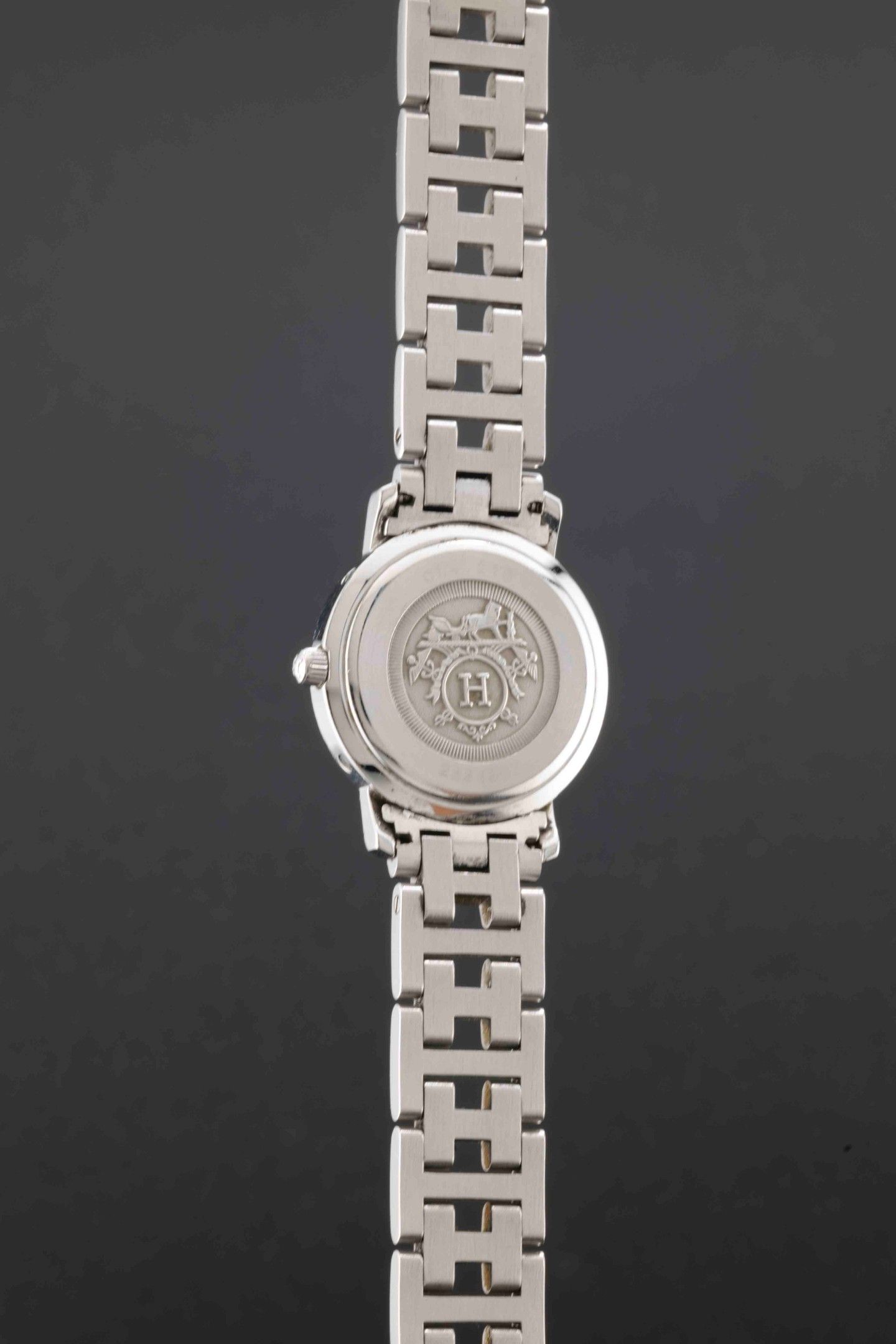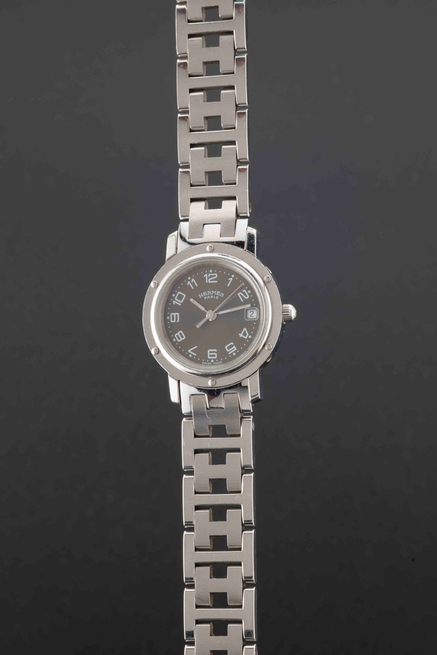 Strap: steel links forming H shapes, steel folding clasp signed Hermès Paris.