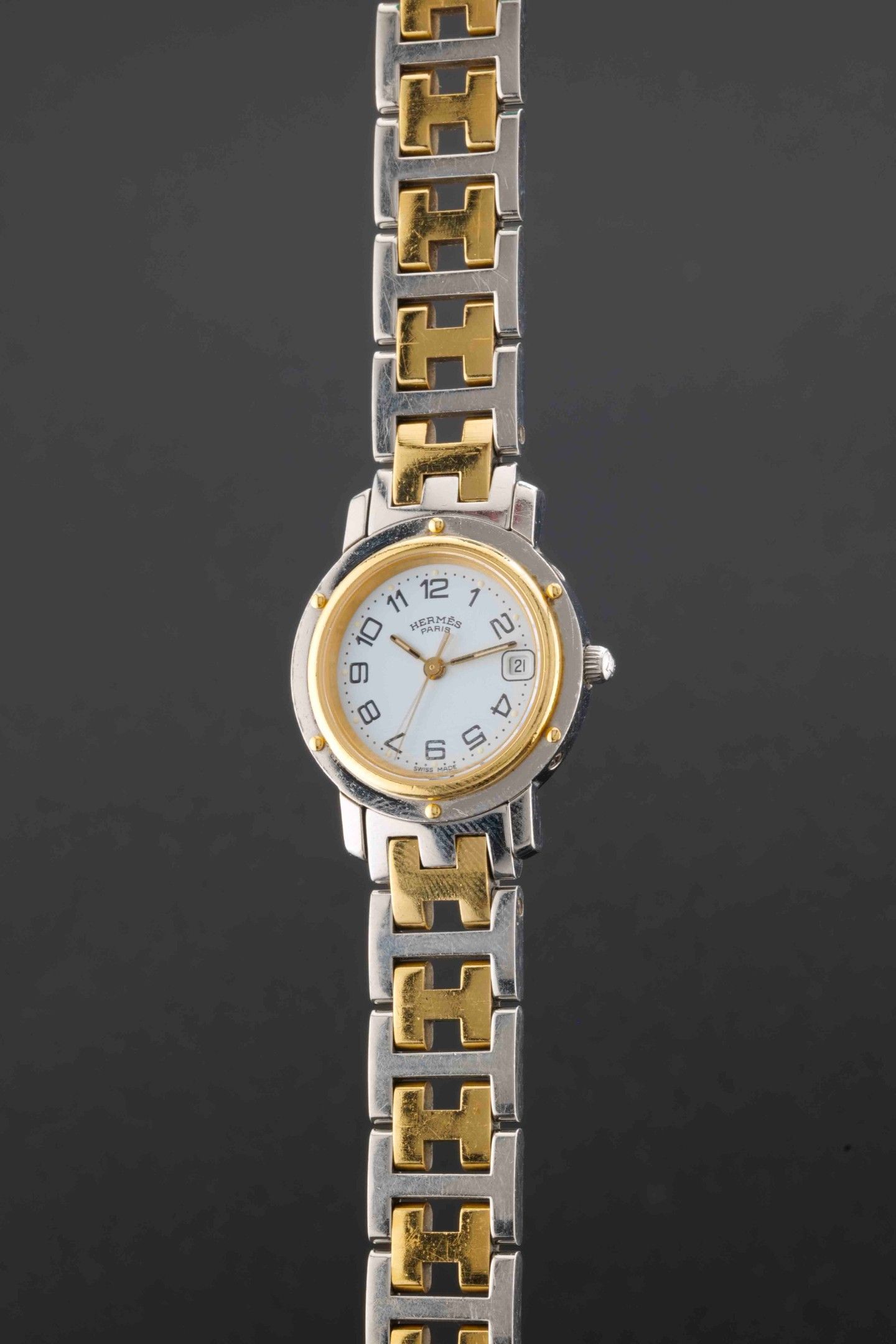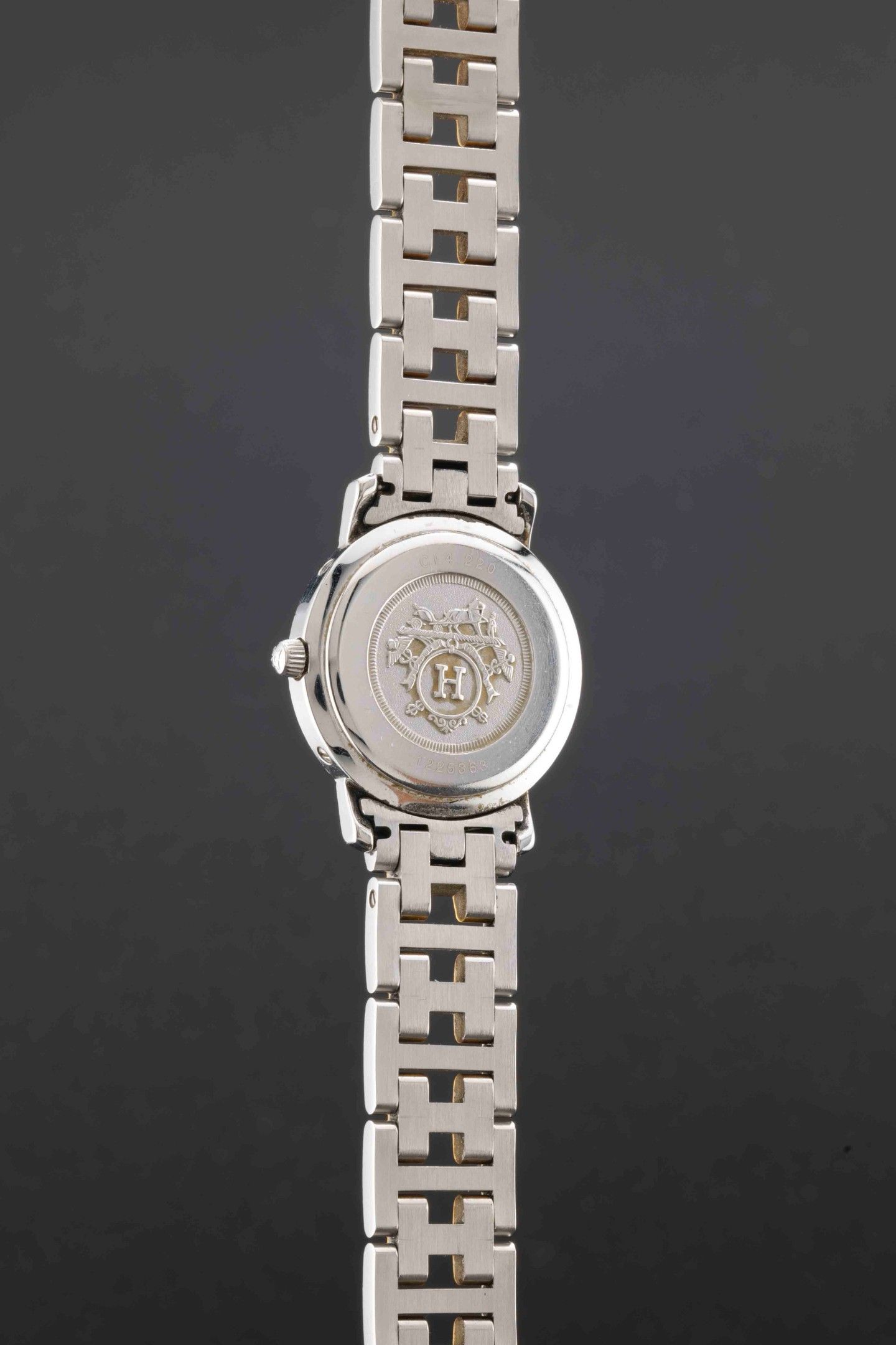Dial: white signed Hermès, painted beaded hour markers and painted Arabic numerals, date window at 3 o'clock.