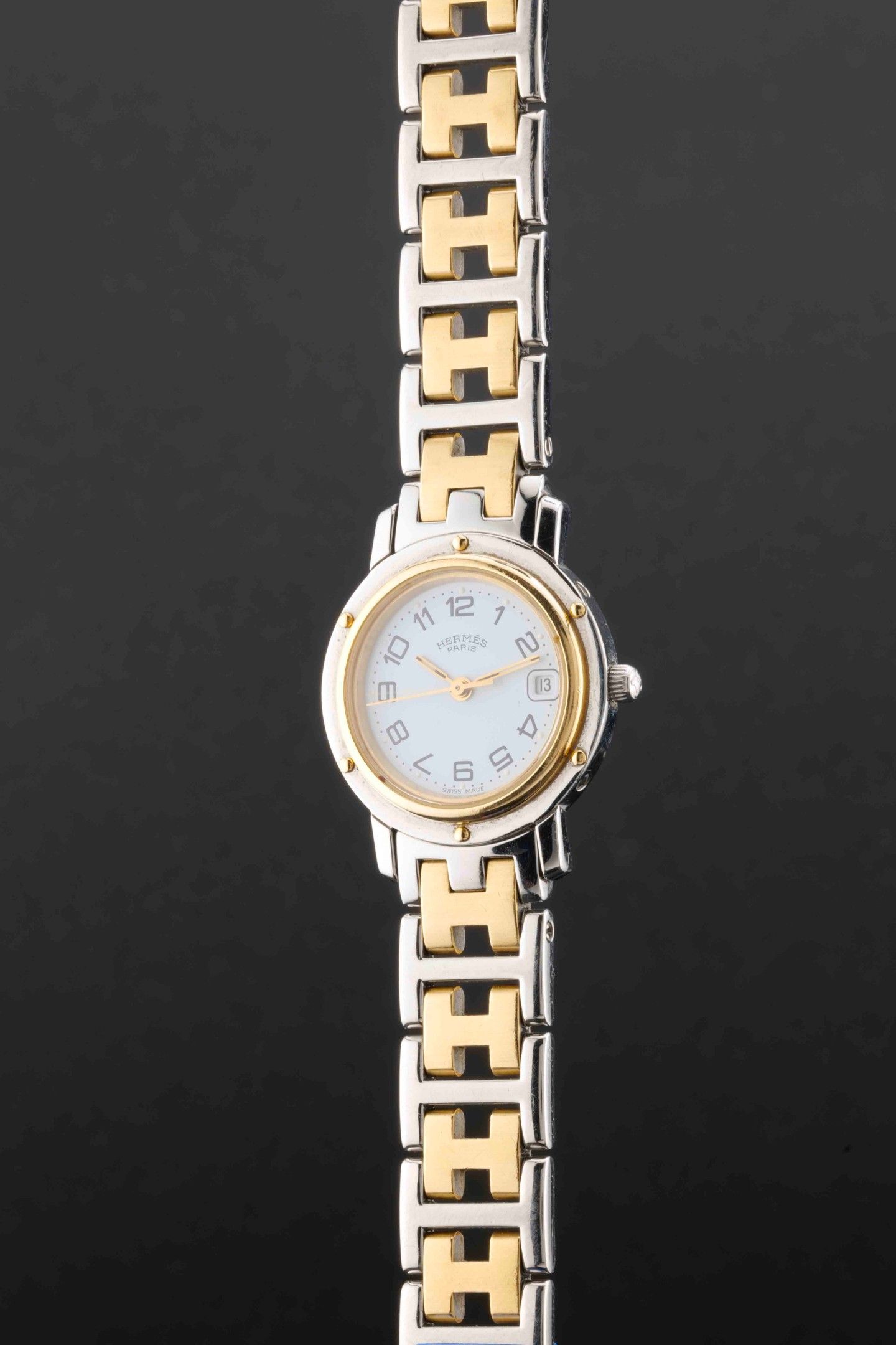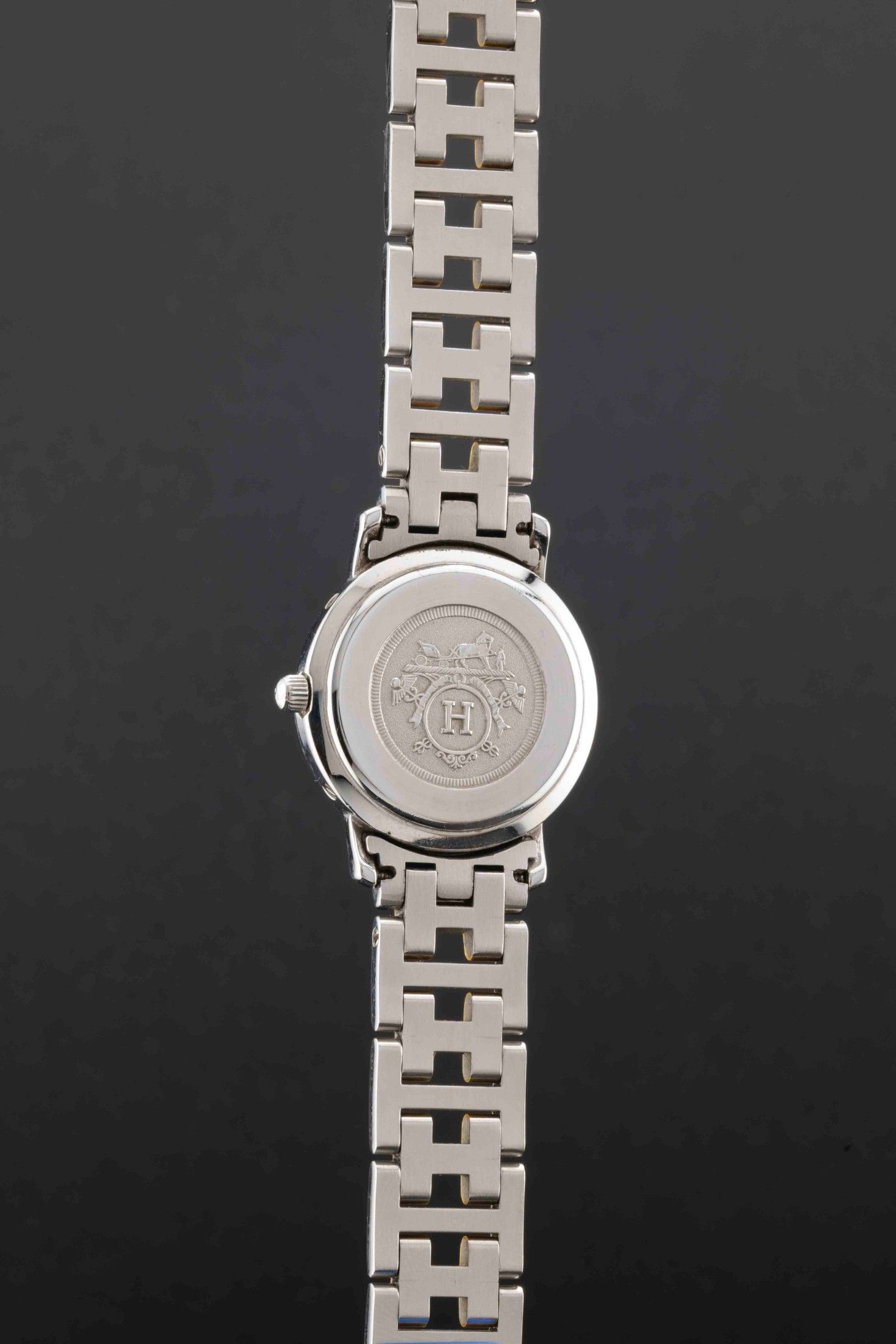 Dial: white signed Hermès, painted beaded hour markers and painted Arabic numerals, date window at 3 o'clock.