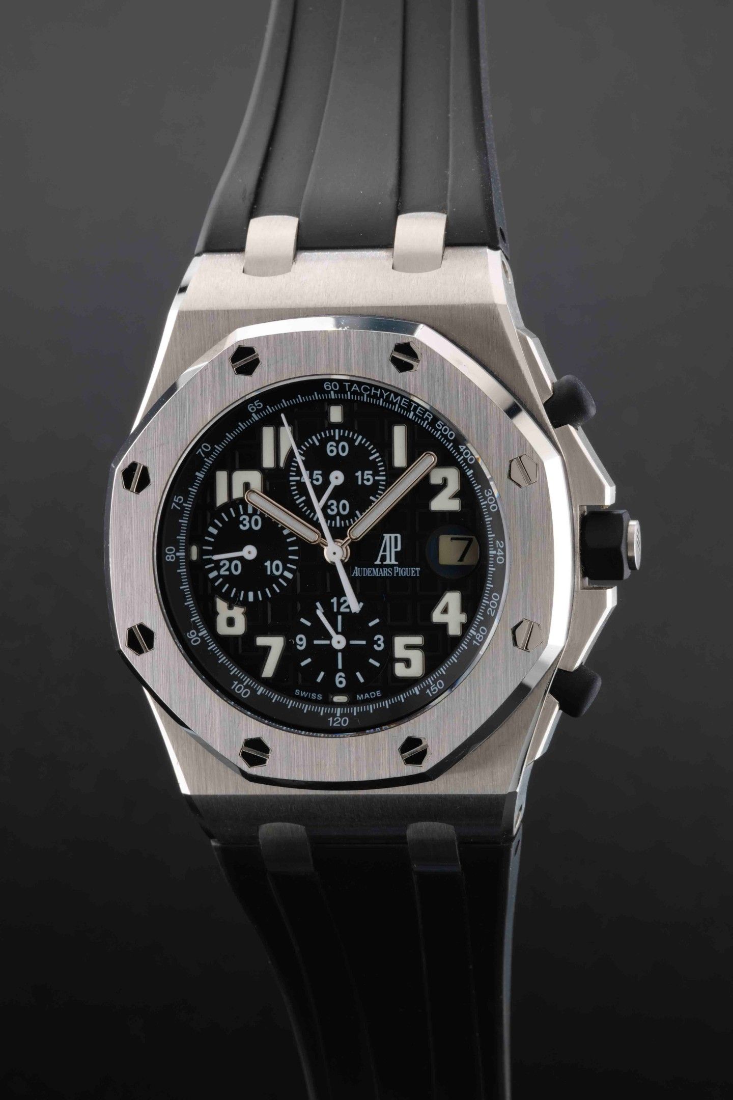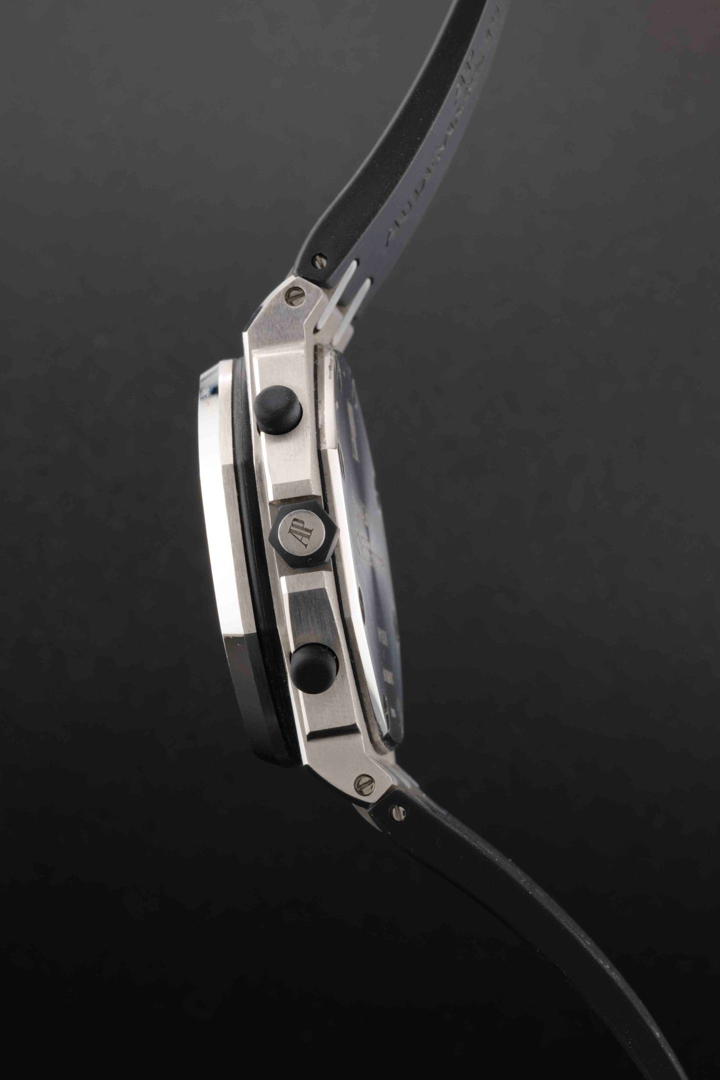 Strap: black rubber strap signed Audemars Piguet, folding clasp signed Audemars Piguet.