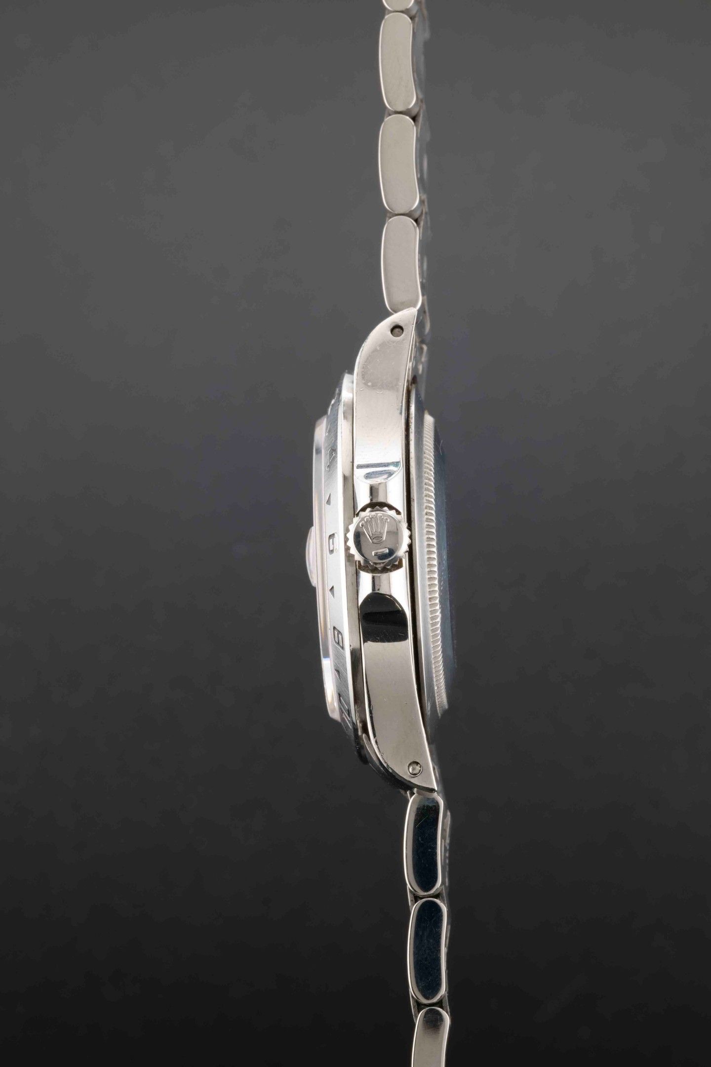 Dial: white signed Rolex, applied and luminescent round, rectangular and triangular hour-markers, date window at 3 o'clock.