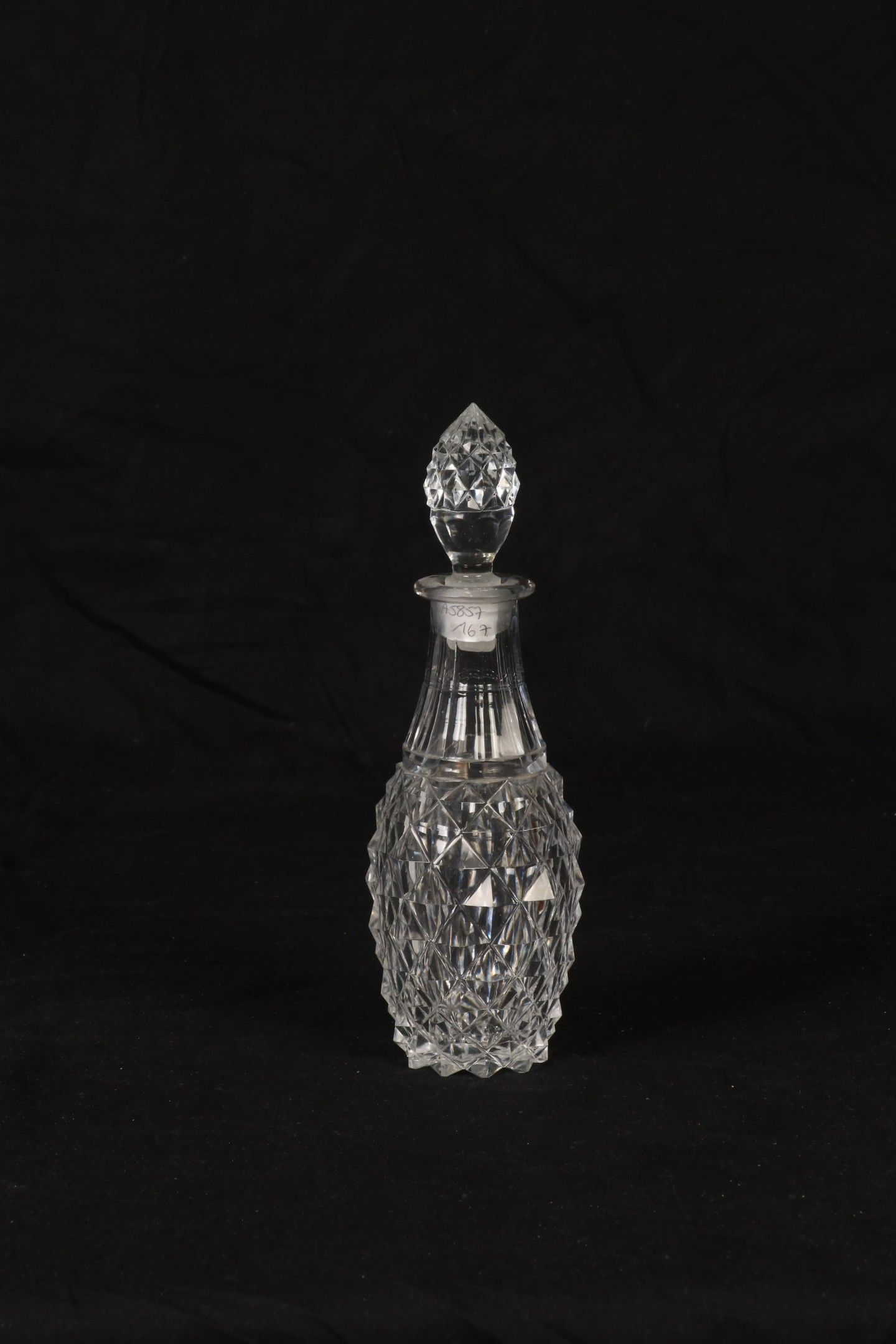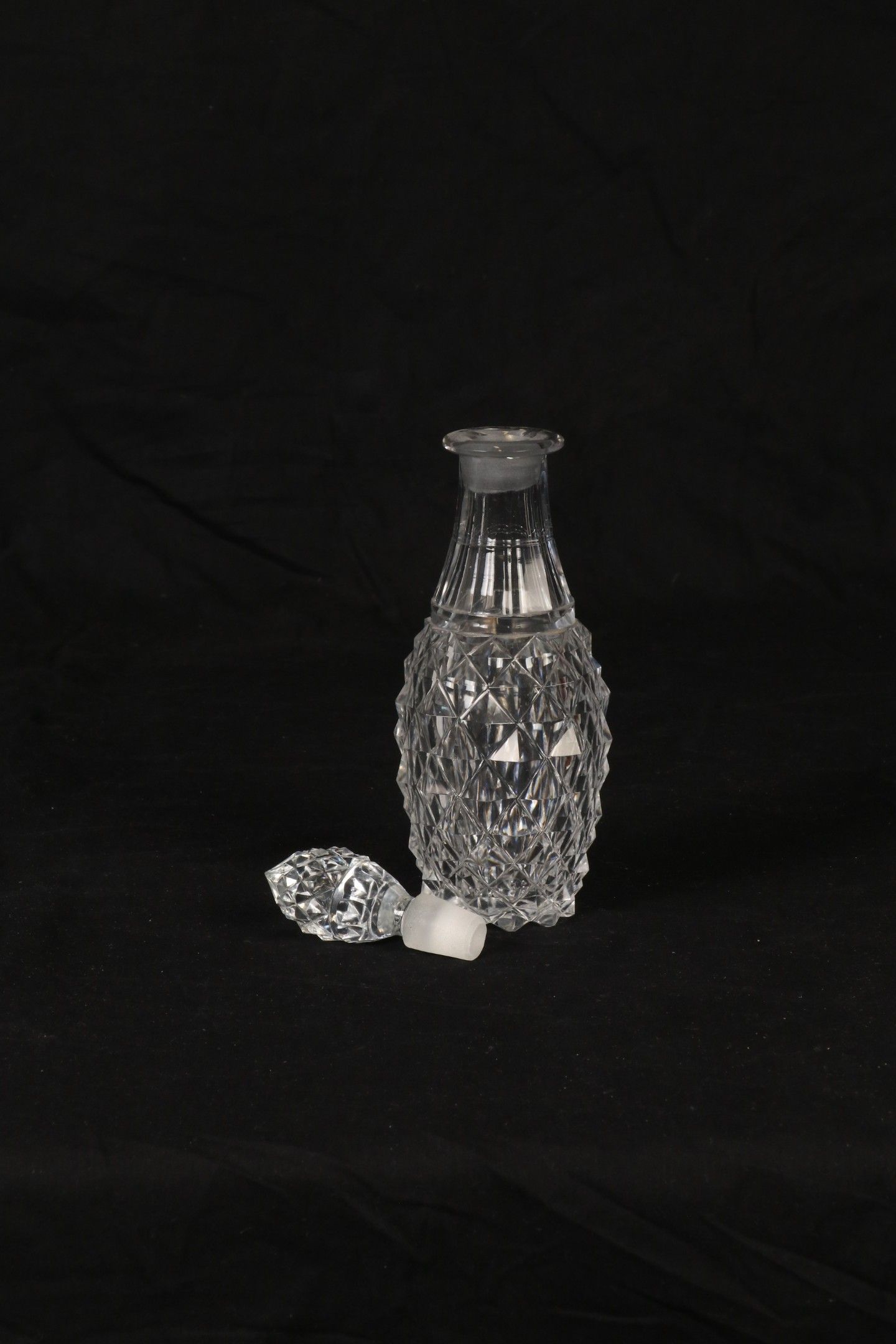 BACCARAT (Attributed to) - Crystal decanter moulded with diamond points. H. 24 cm (slight chips).