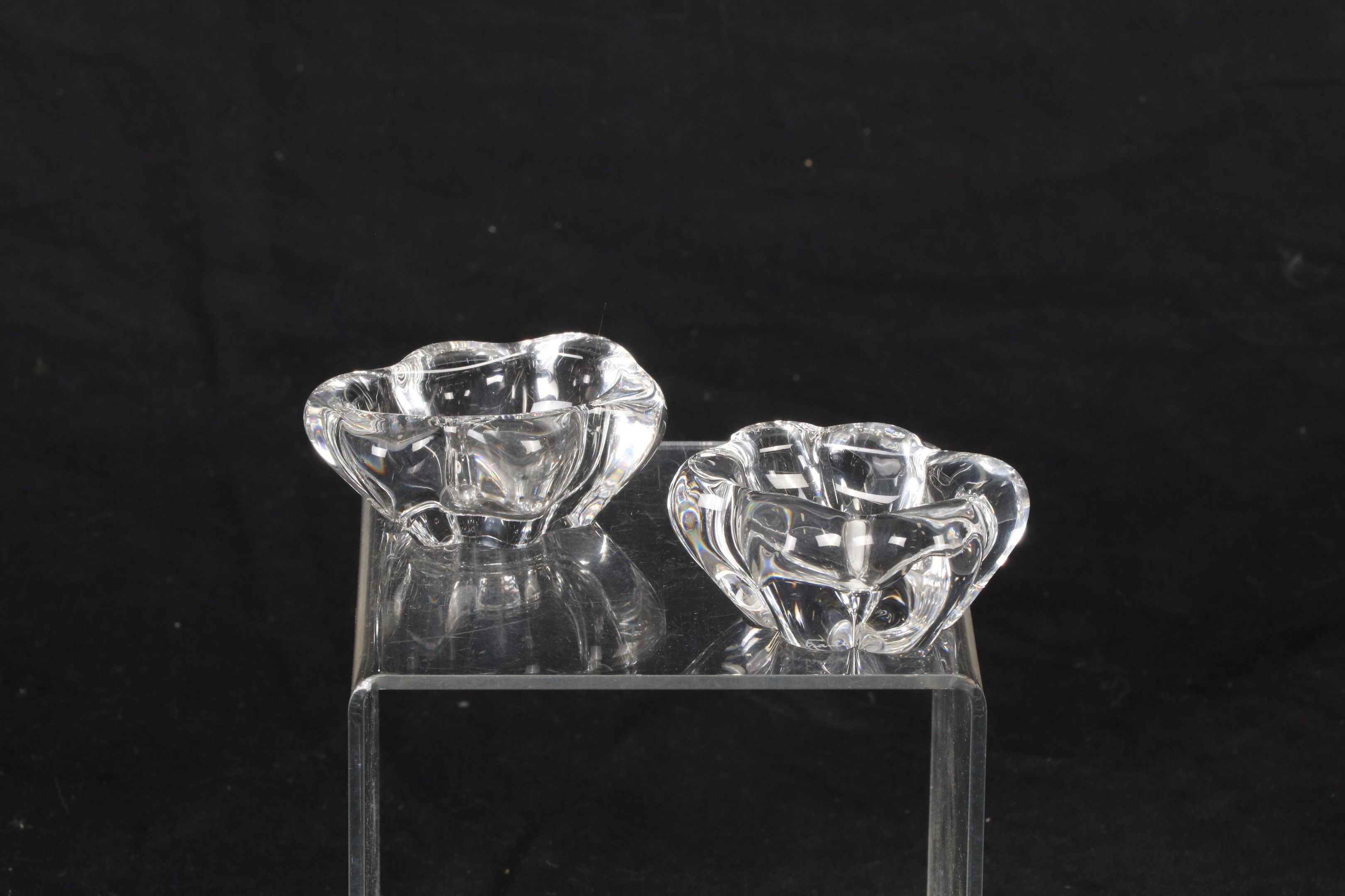 DAUM France - Pair of polylobed moulded crystal salad bowls.