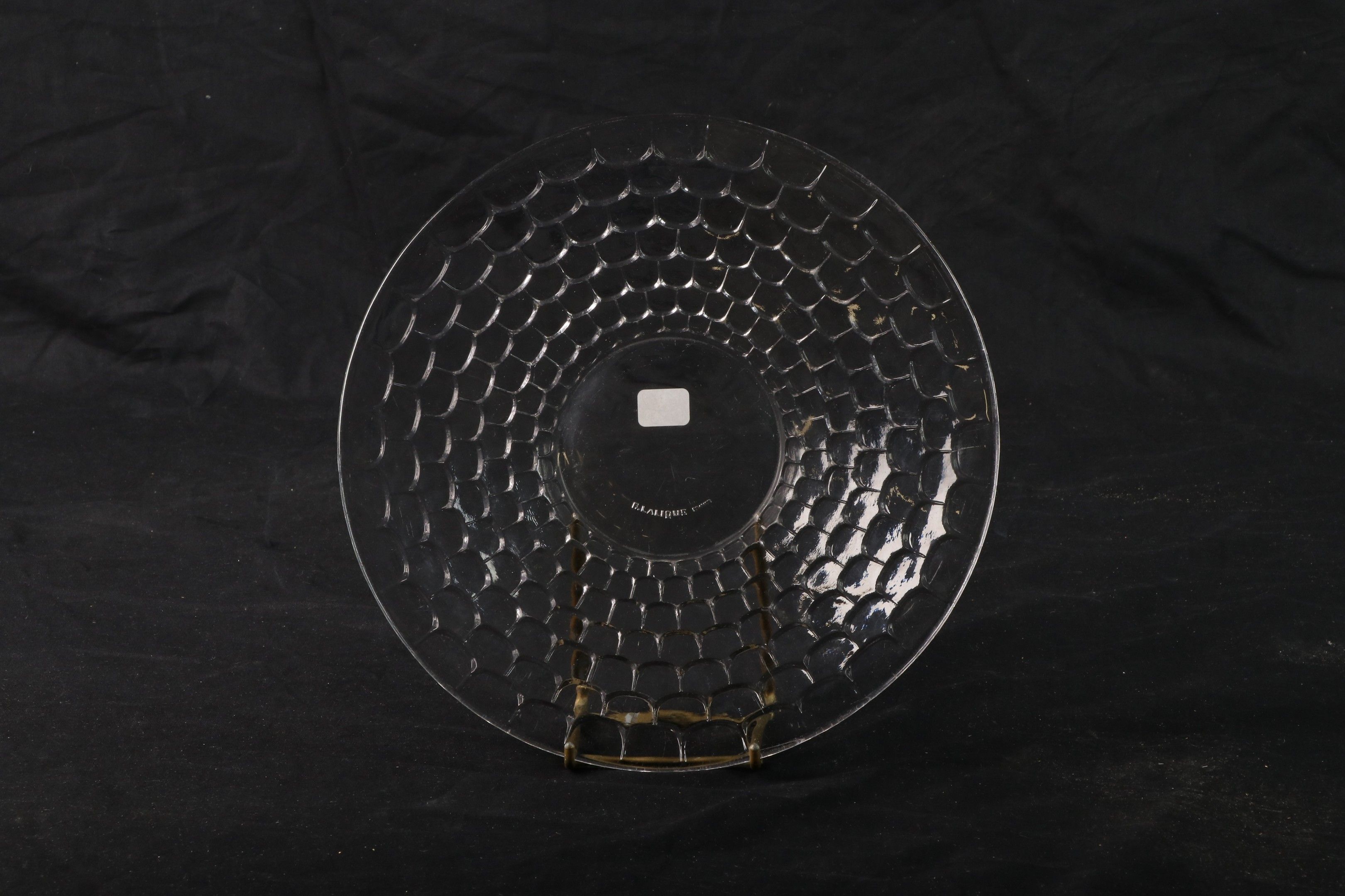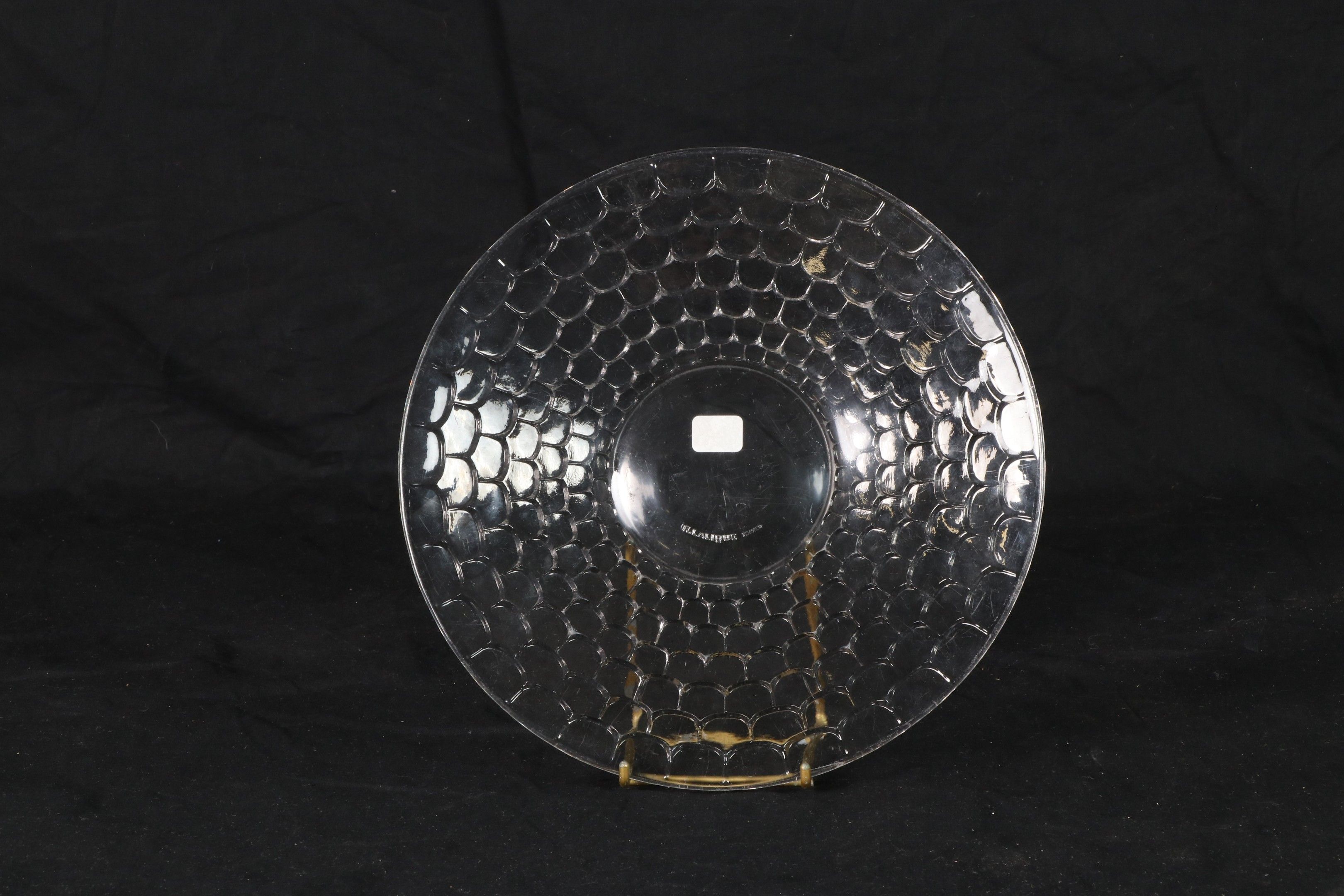 René LALIQUE (1861-1945) - Plate in pressed moulded glass, Ecailles model. Signature "R. Lalique France" in relief in the centre. D. 27.5 cm (scratches from use).