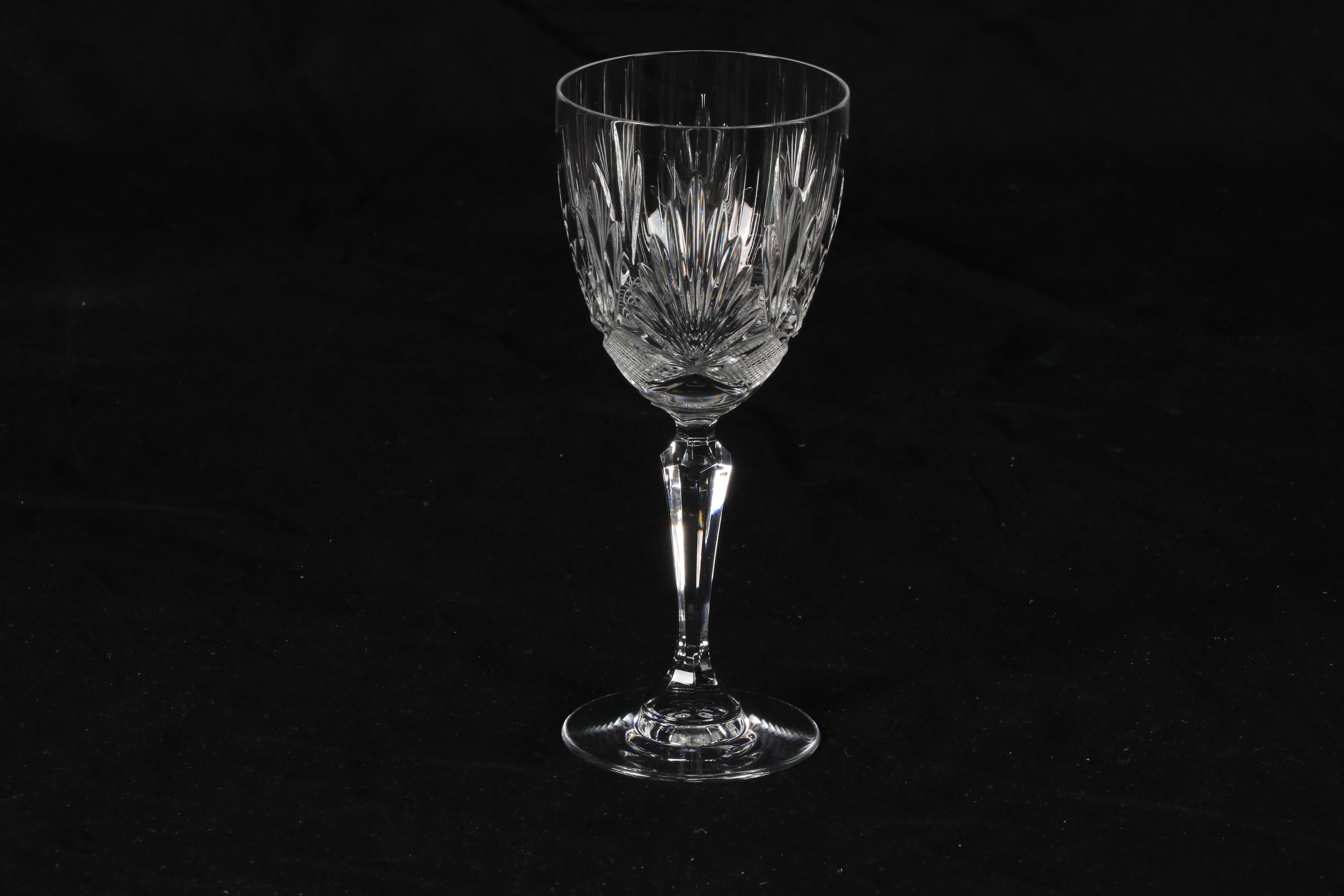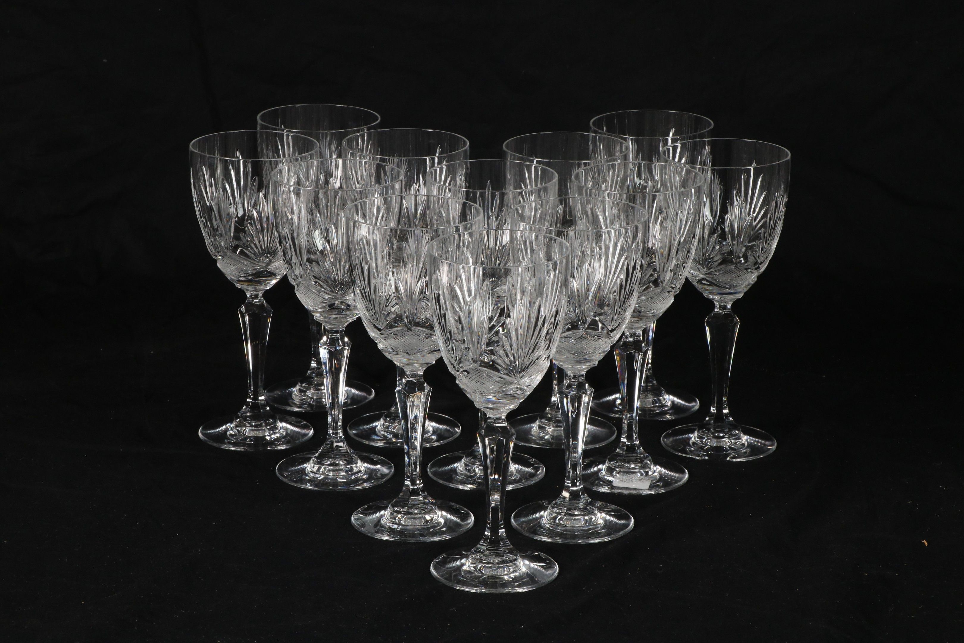 Suite of 12 cut crystal glass stemmed glasses. Eastern Europe. Height 19 cm.