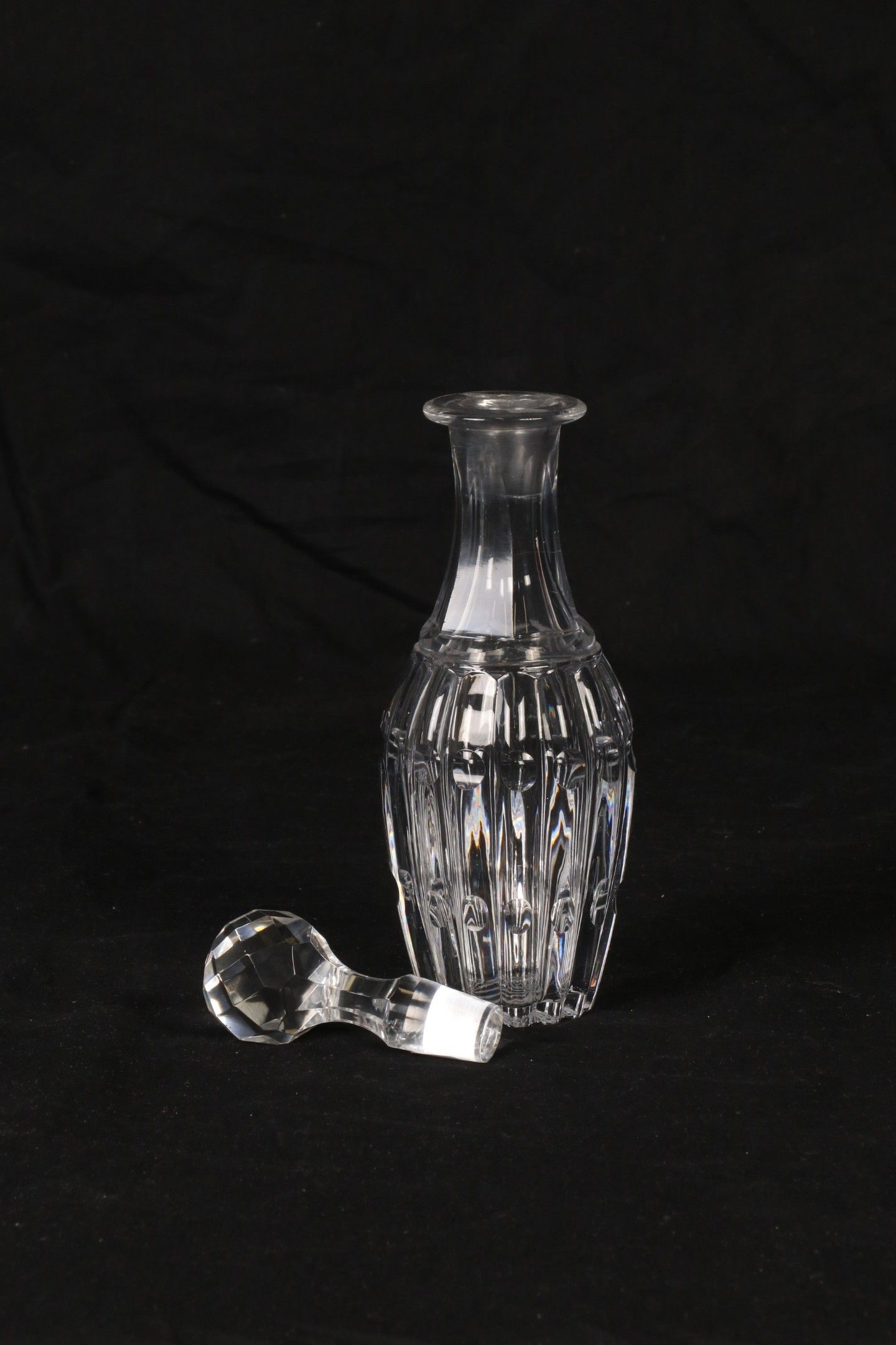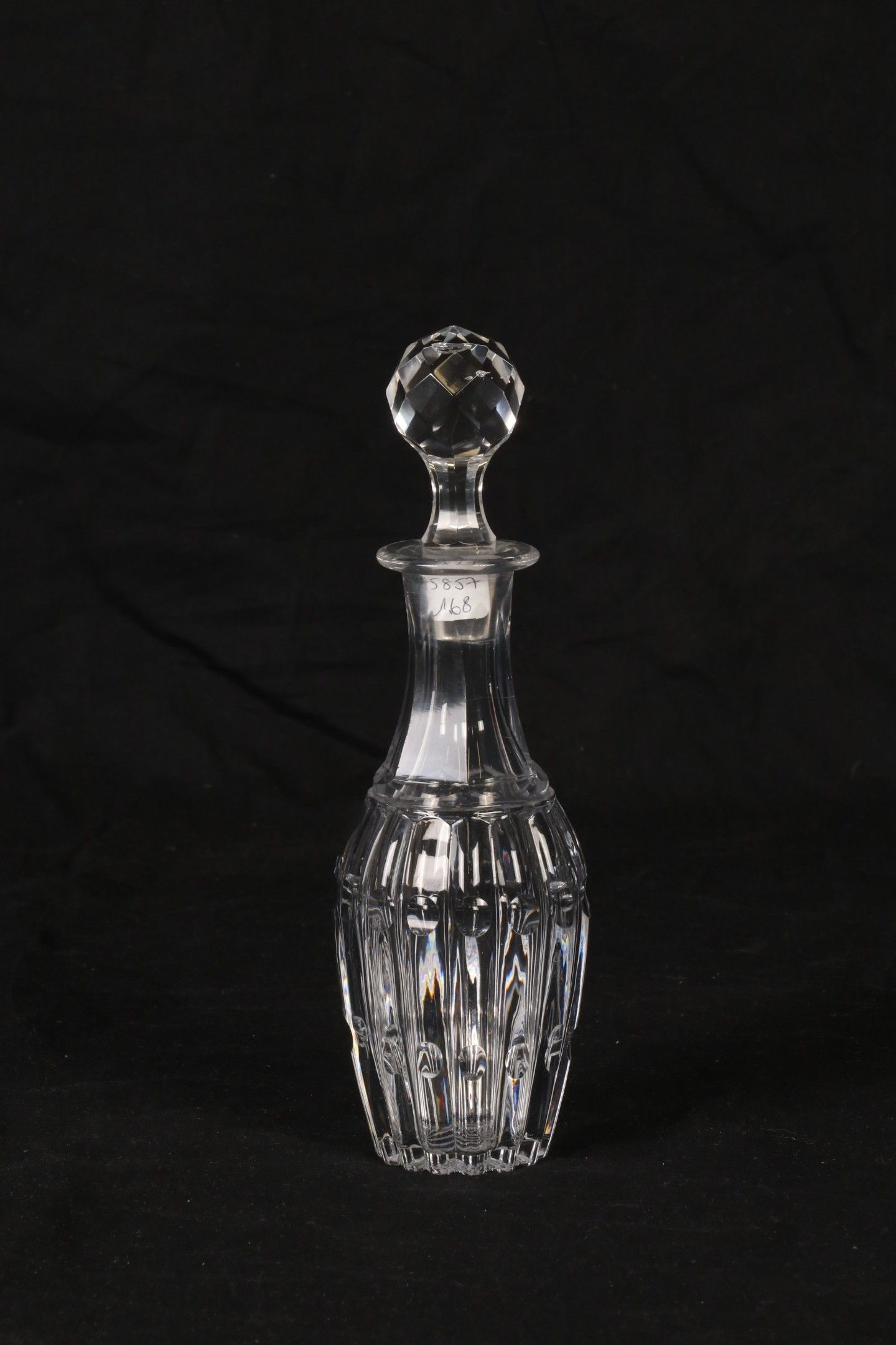 Moulded crystal decanter with ribs and cupules. H. 24.5 cm (bubbles in the stopper).