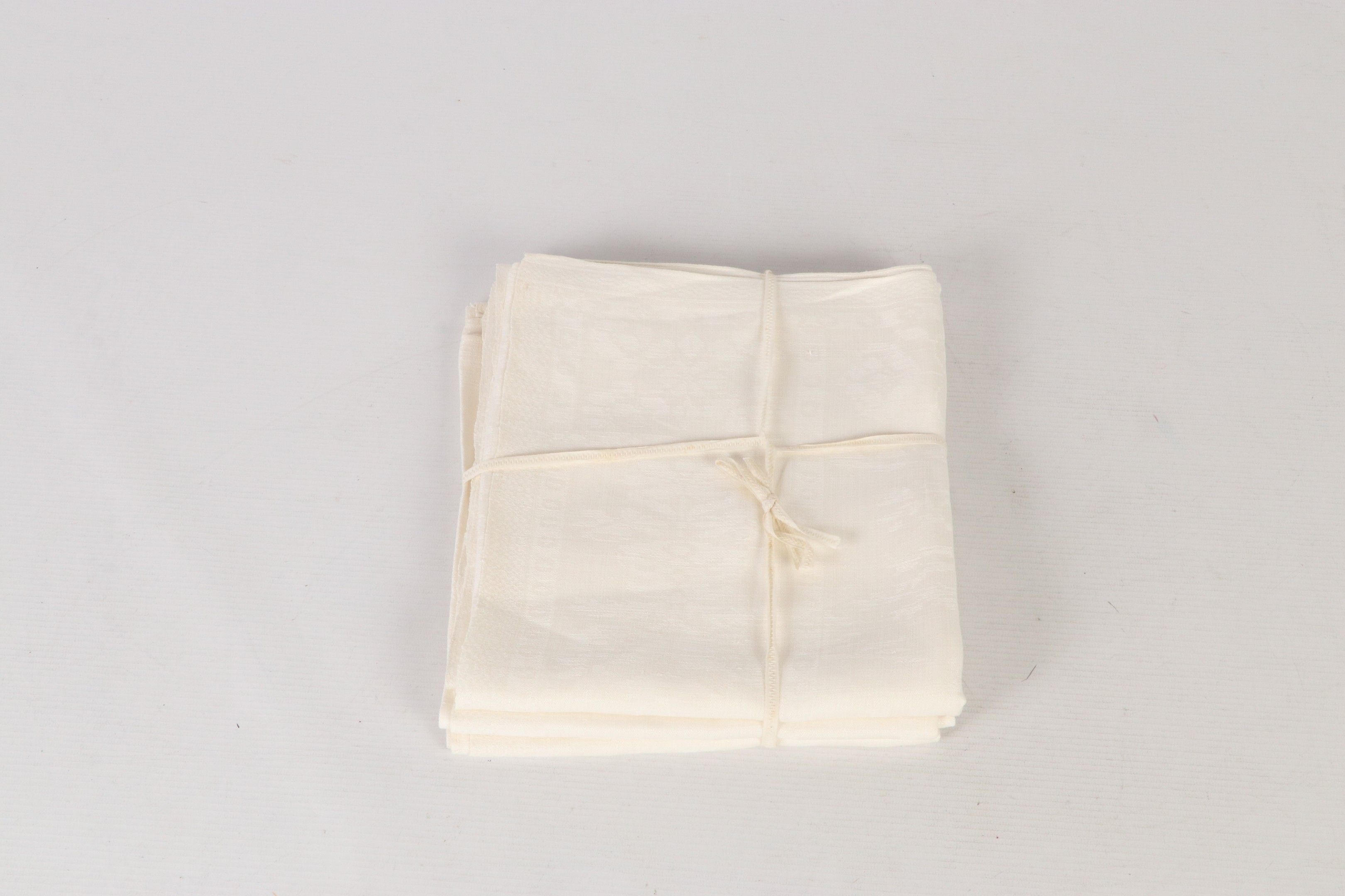 Set of three fine damask napkins decorated with a wild boar hunt, surrounded by garlands of flowers. Early work, first half of the 19th century or late 18th century. 110 x 90 cm (some wear).