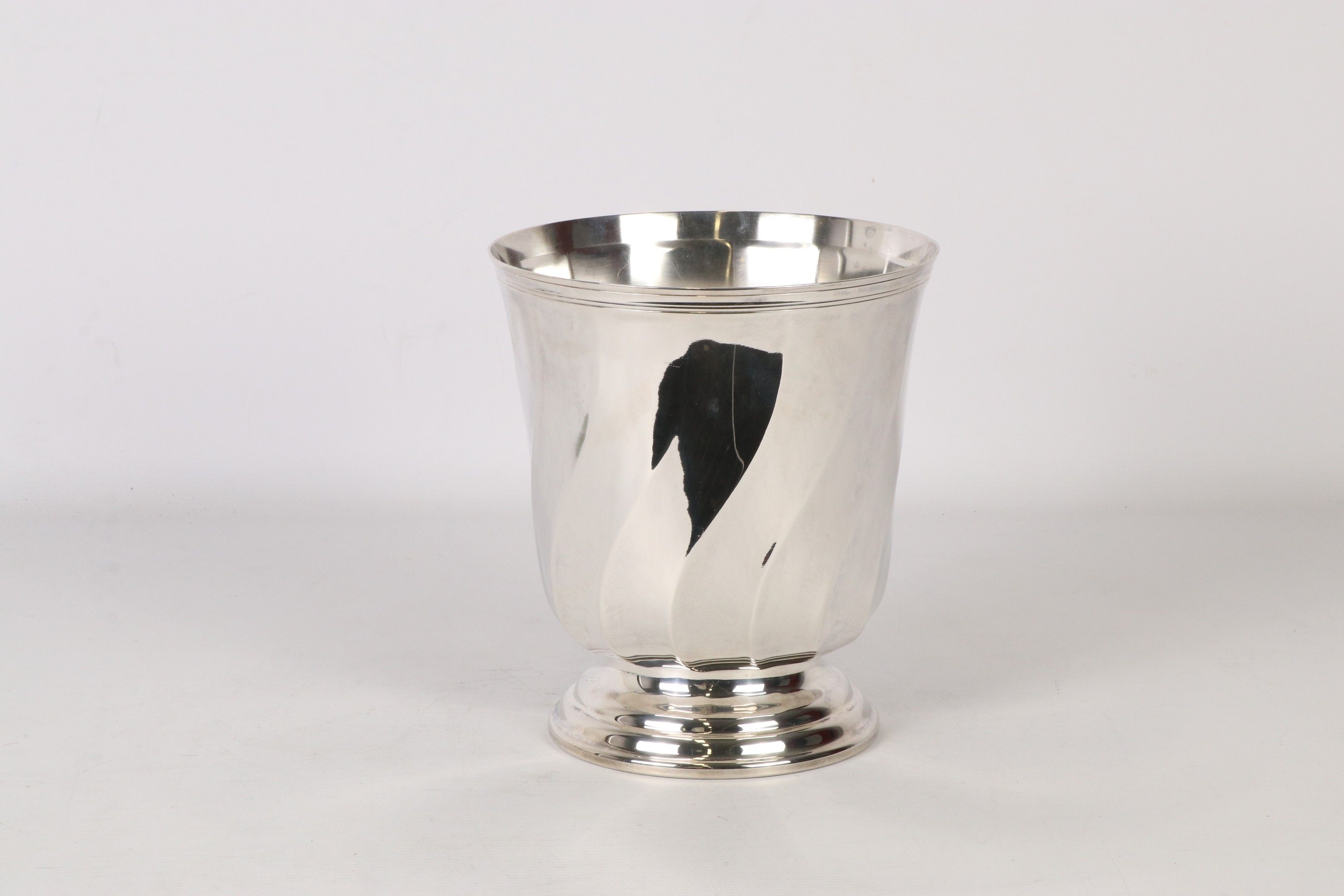 CHRISTOFLE - Silver-plated champagne bucket, the body with twisted ribs, the stepped pedestal. Height 23.5 cm.