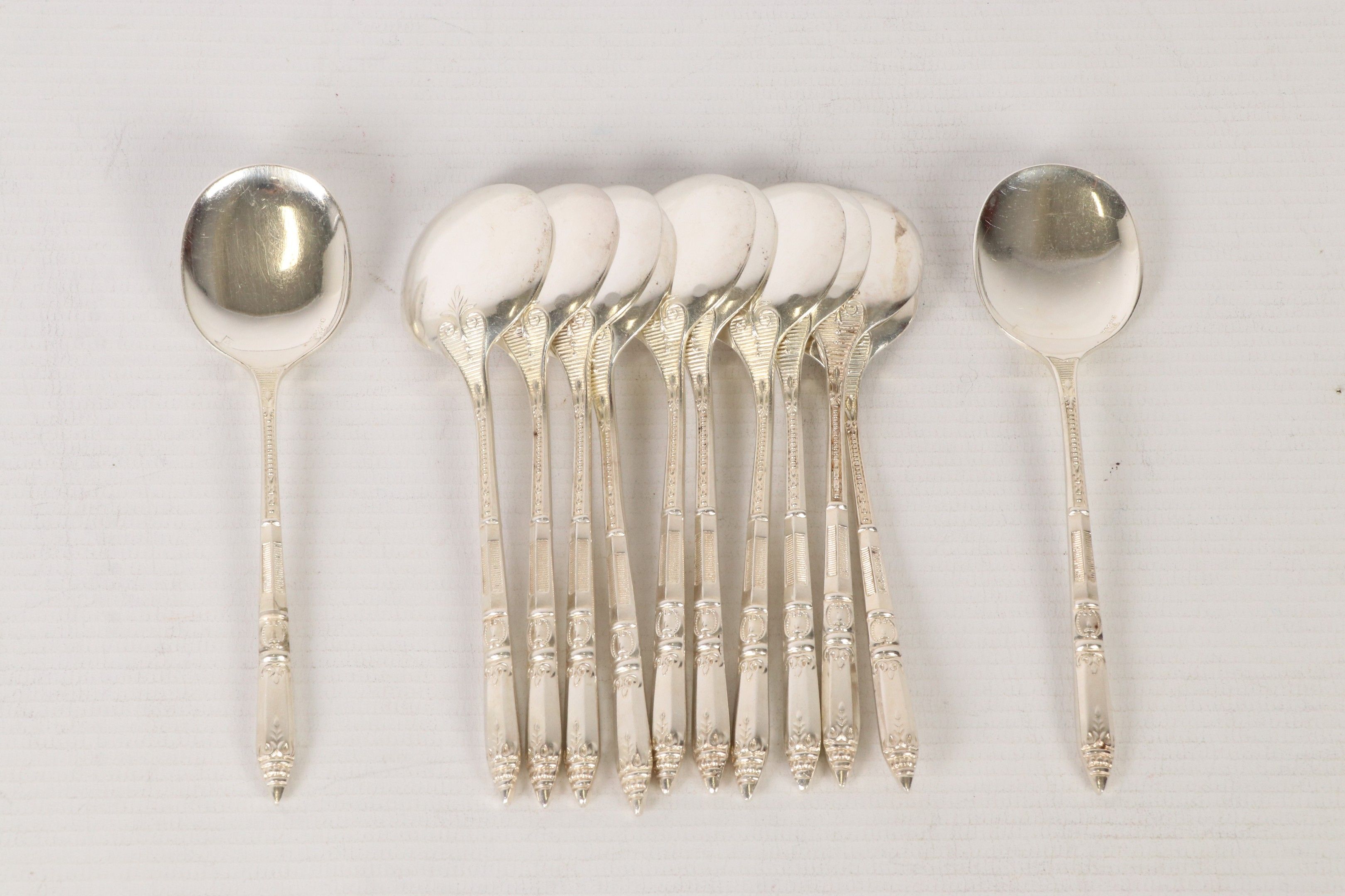 ERCUIS - Set of 12 silvered metal ice-cream spoons, the spat…