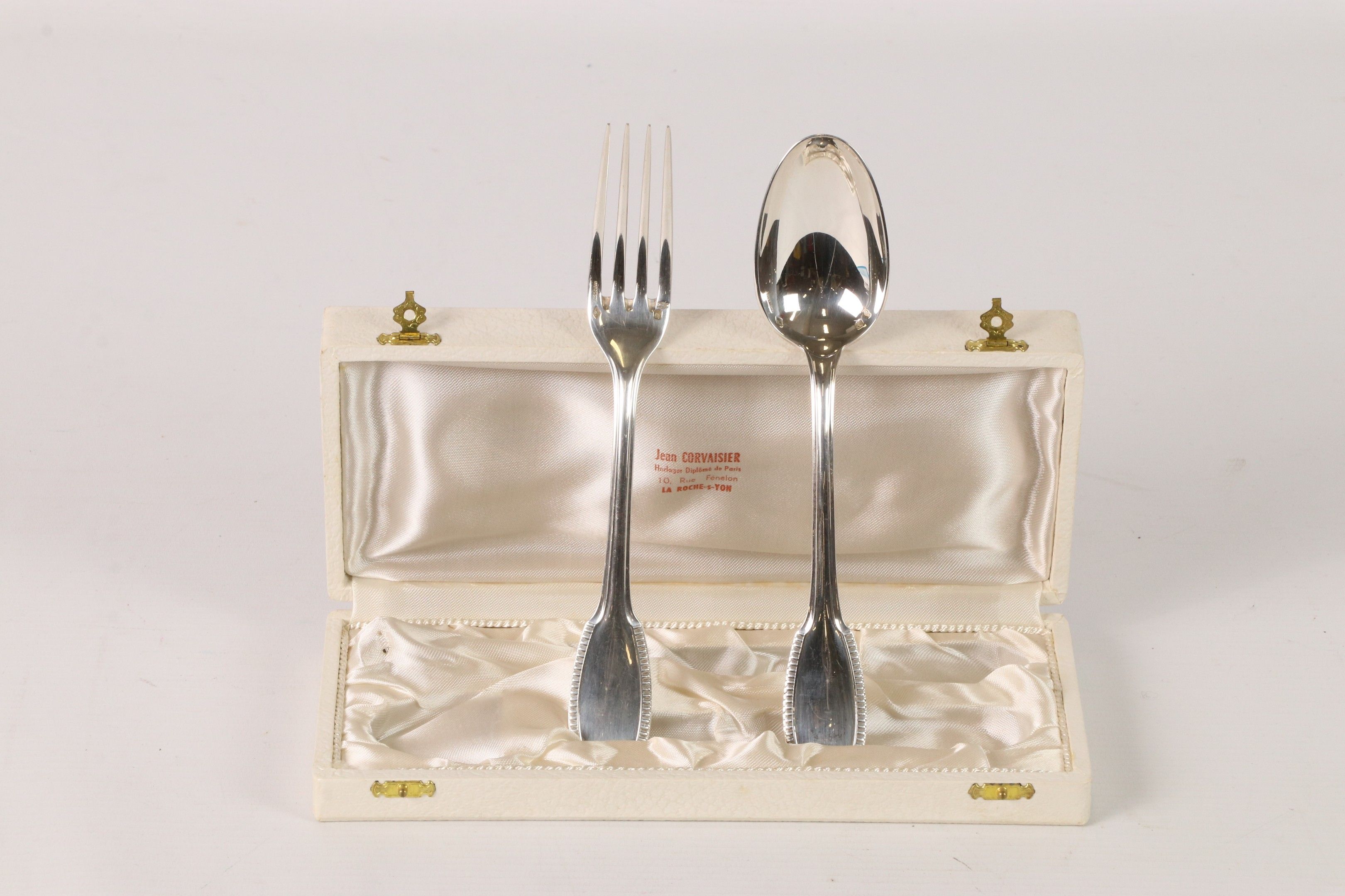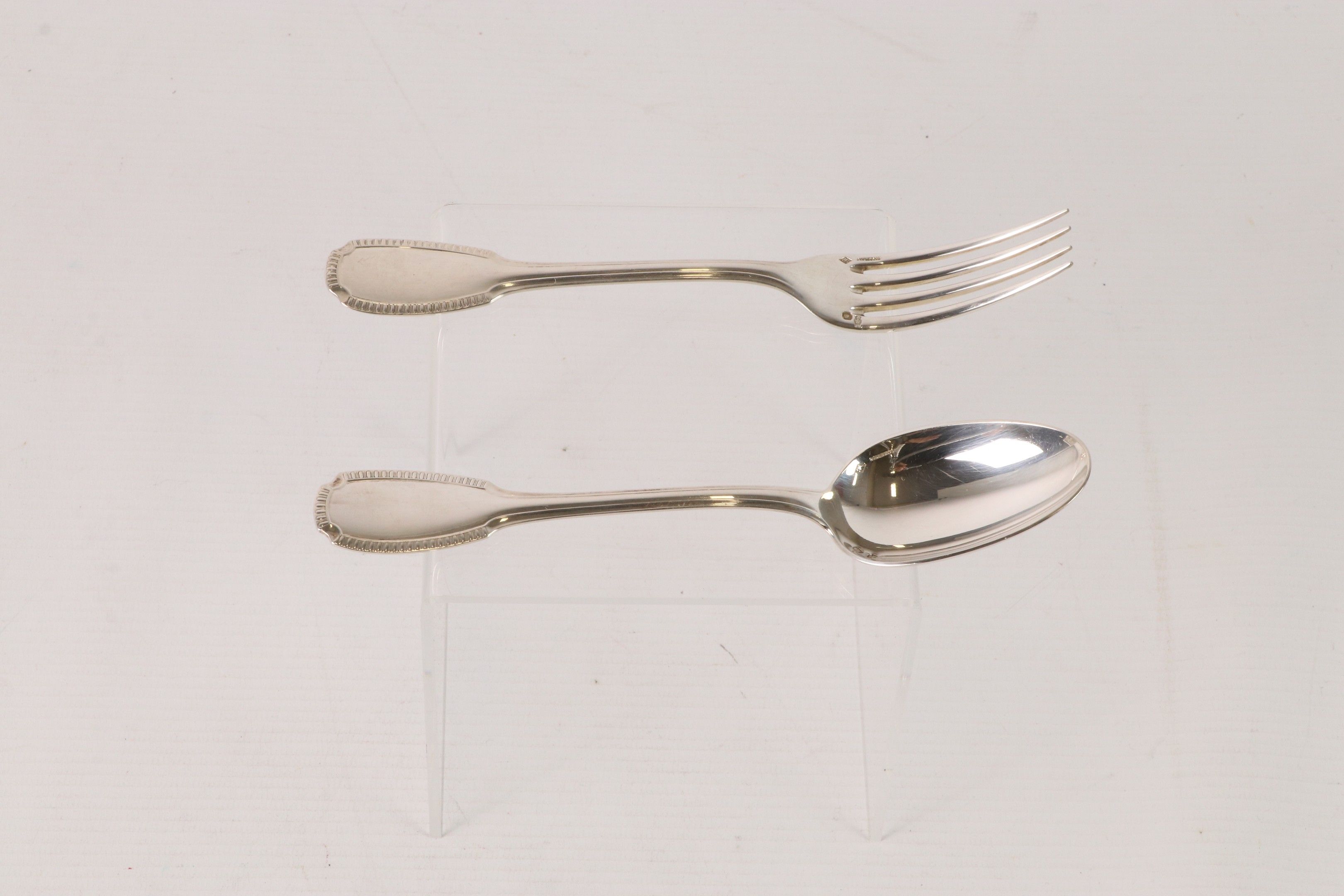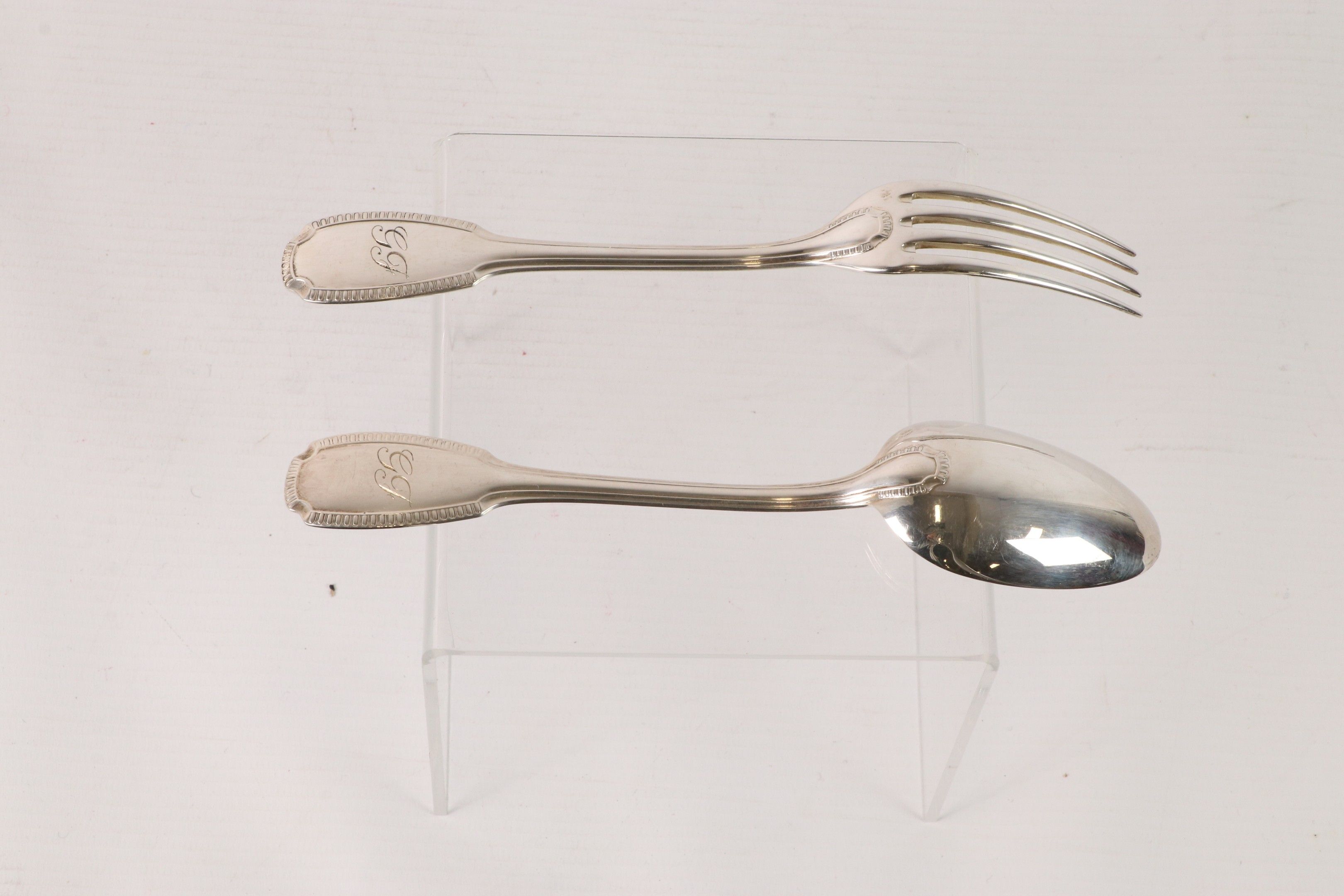 CARDHEILLAC pour CHRISTOFLE - Silver flatware, the spatula with gadroon frieze engraved GF. Minerve hallmark. Weight: 134 g. In a case.