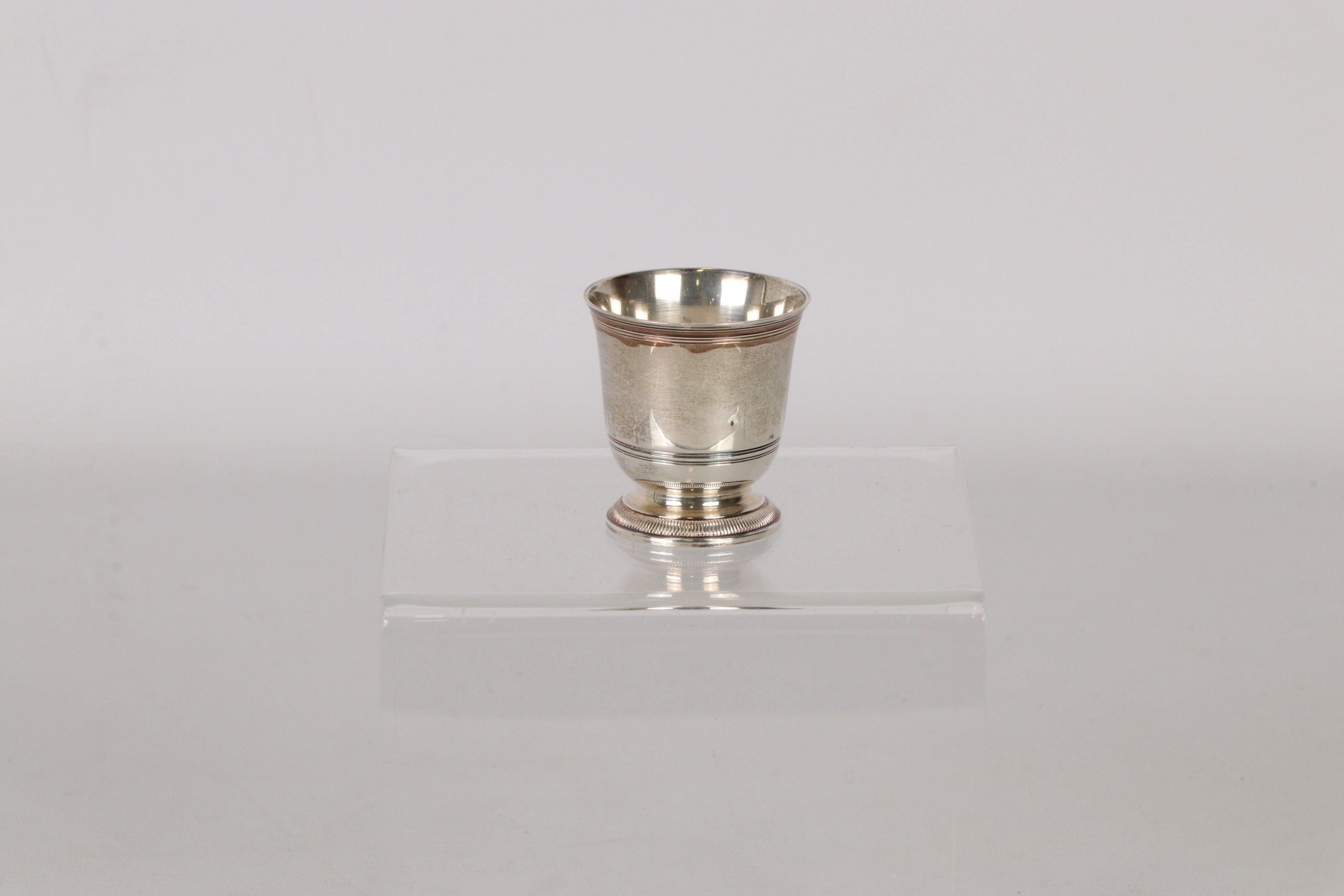 PUIFORCAT - Silver tulip egg cup with pedestal, the bowl outlined with fillets, the pedestal embossed with a frieze of gadroons. Weight : 47,47 g.