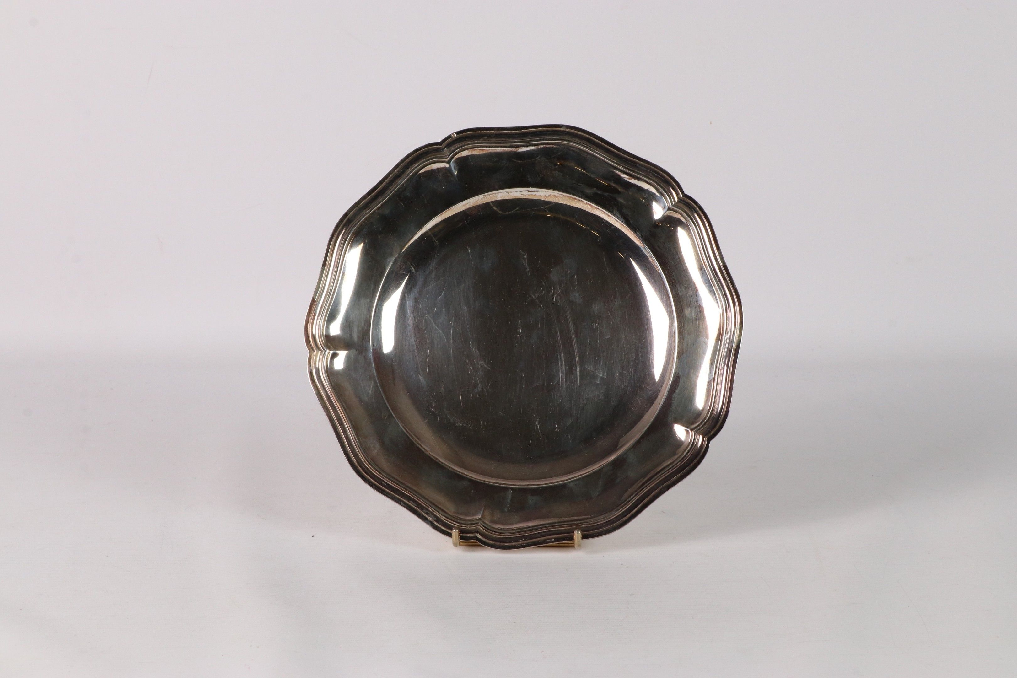 Circular silver dish, the scalloped wing moulded with fillets. Marked Minerve. D. 28 cm. Weight : 750 g.