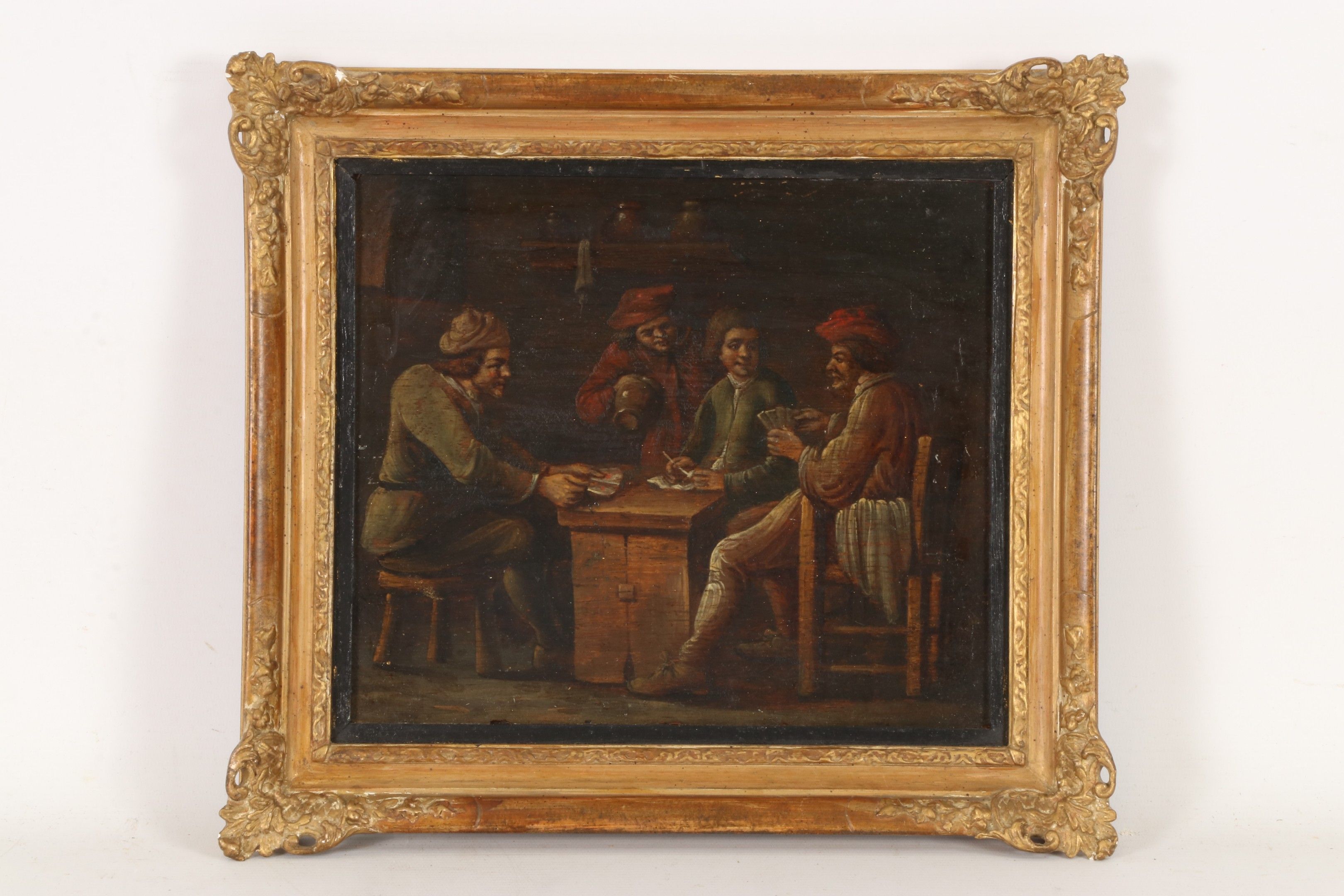 18th century FLEMISH SCHOOL - Cabaret scene. Oil on panel. 21.5 x 25.5 cm.