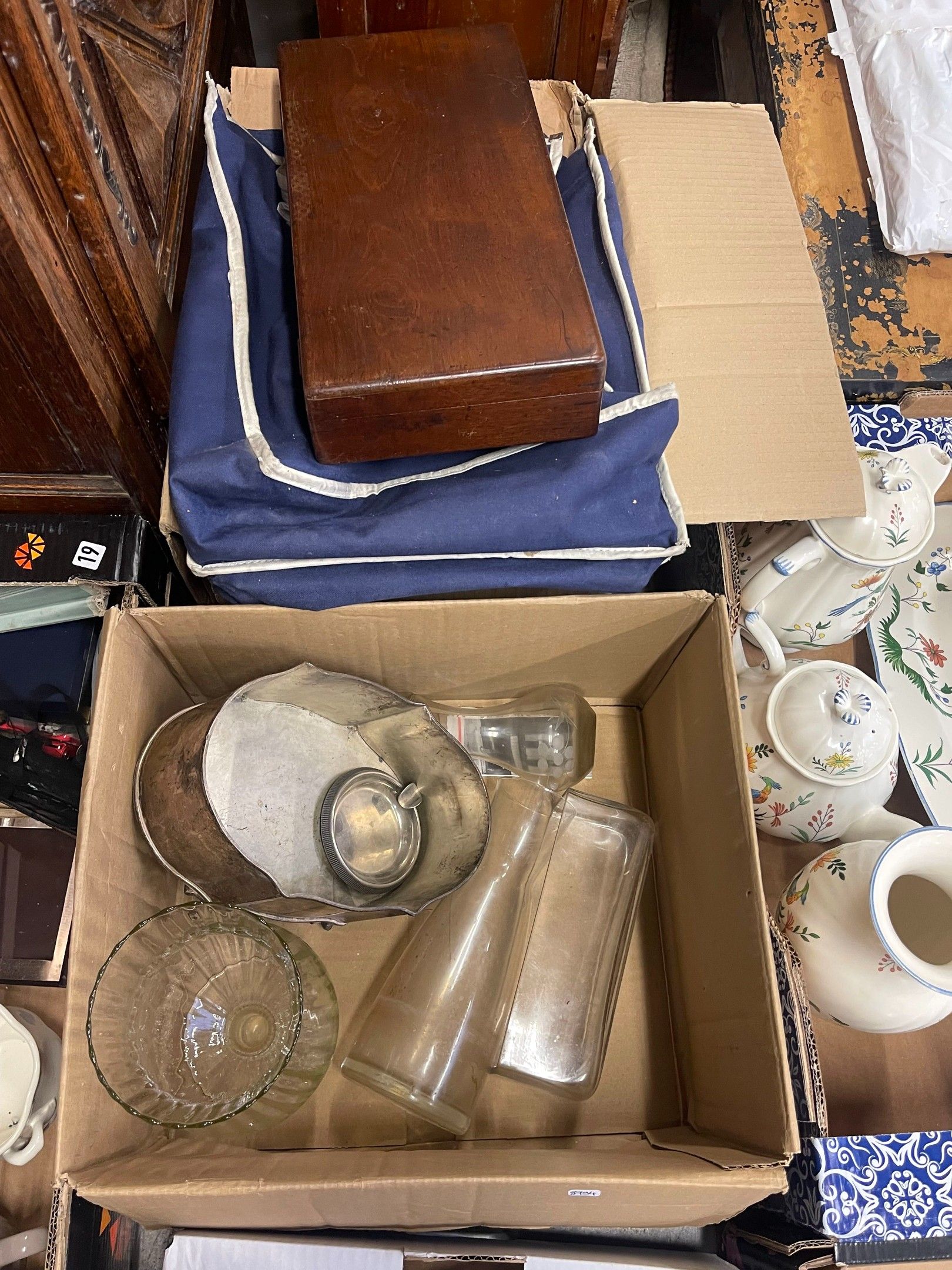 Silvered metal and curios from a set after the departure of …