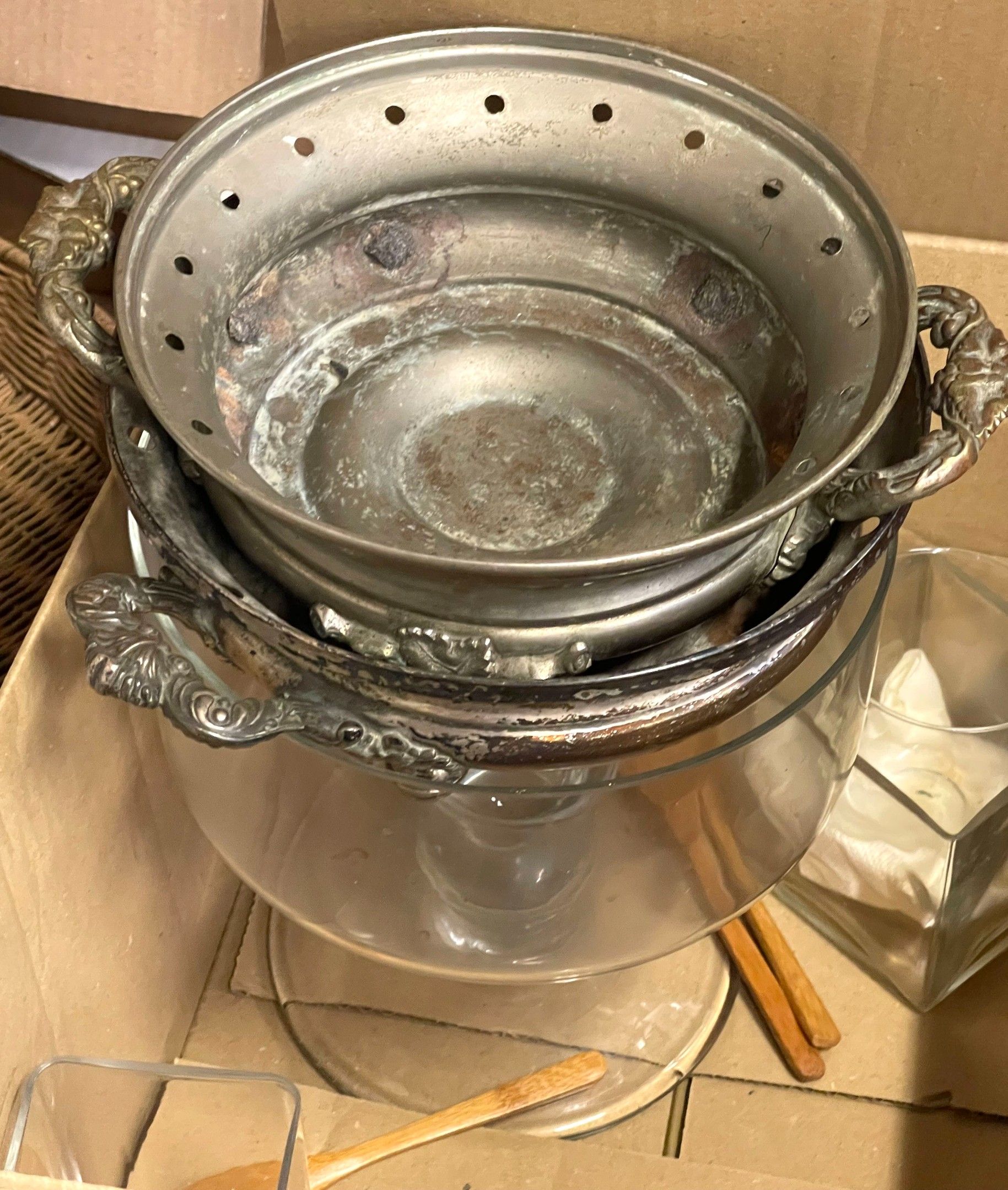 Silvered metal and glassware from a set after the departure of Madame DE X...