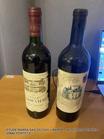 2 Bottles including Château LA LOUVIERE 1996 PESSAC-LEOGNAN and Château OLIVIER 1er CRU GRAVES 1938 very low level sold for the label only