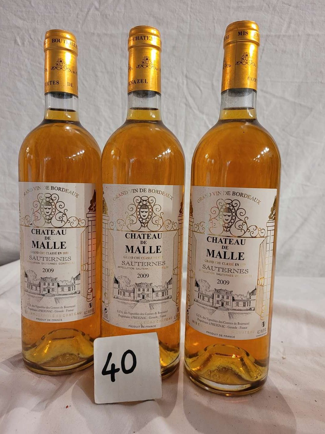 3 bottles CHÂTEAU DE MALLE 2009, GCC SAUTERNES, perfect presentation.