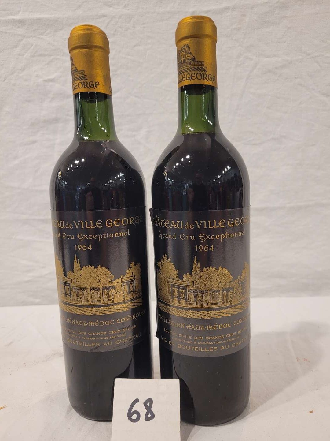 2 bottles CHÂTEAU VILLEGEORGES 1964 HAUT MEDOC. Perfect labels and high shoulder levels.