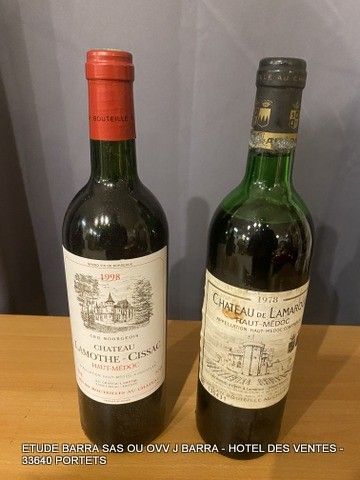 2 Bottles HAUT-MEDOC including Château LAMOTHE-CISSAC 1998 Cru Bourgeois and Château DE LAMARQUE 1978 high shoulder level