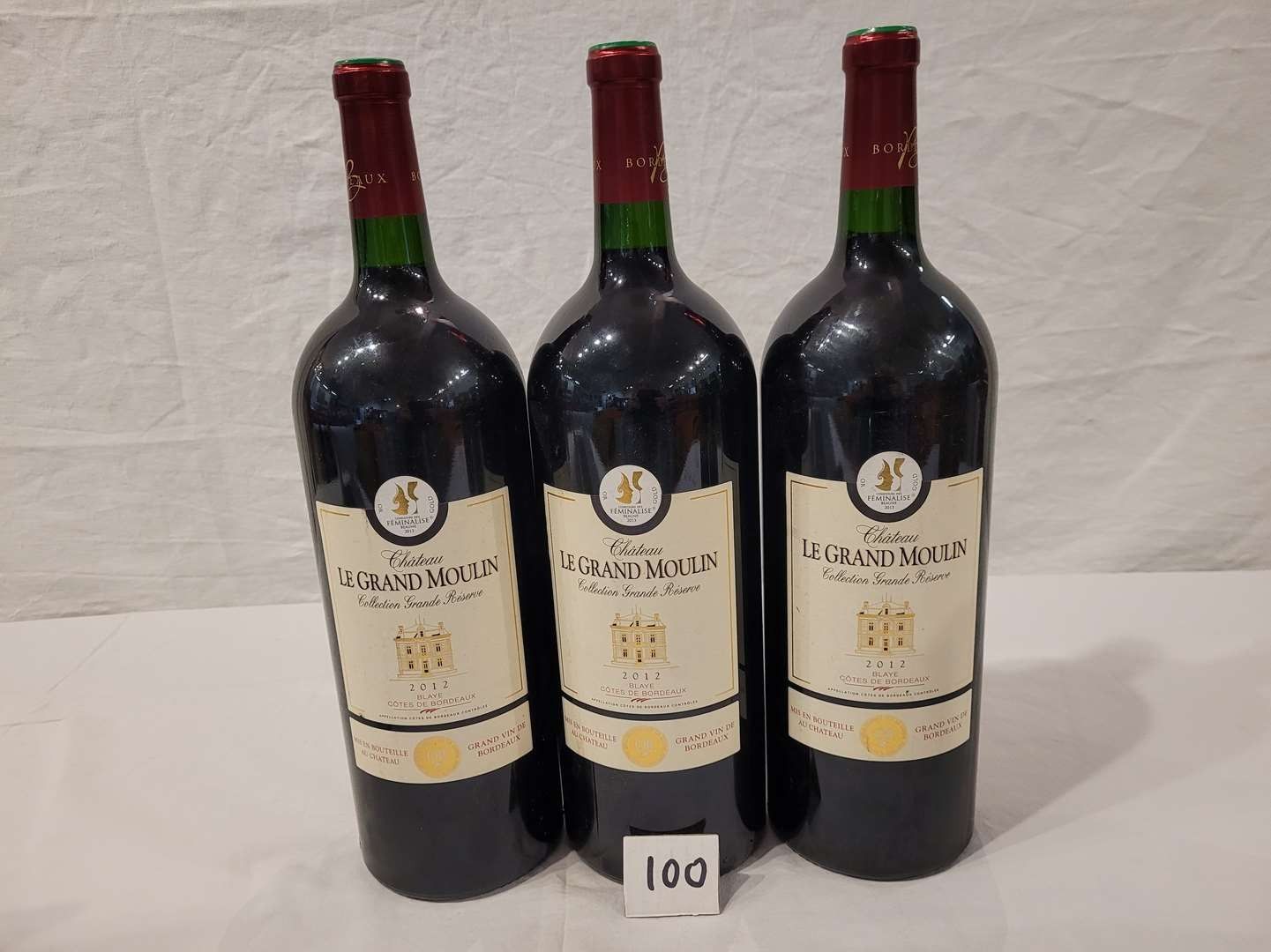 3 Magnums CHÂTEAU LE GRAND MOULIN 2012 BLAYE COTES DE BORDEA…