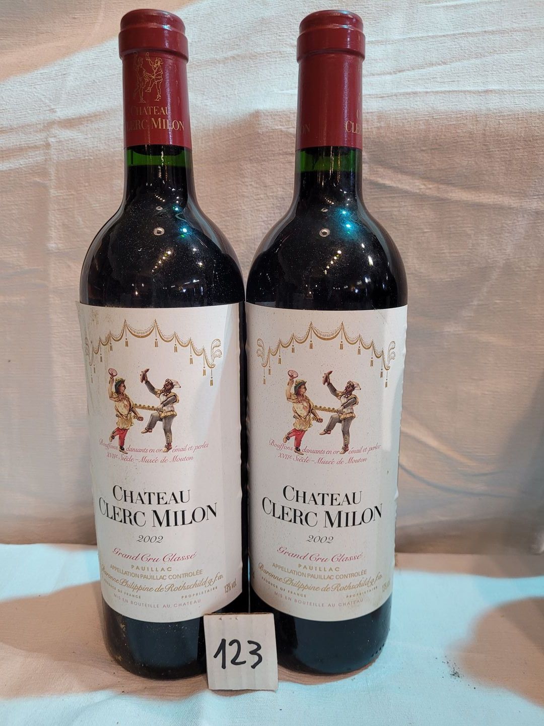 2 bottles château CLERC MILON 2002 GCC PAUILLAC. Beautiful presentation.