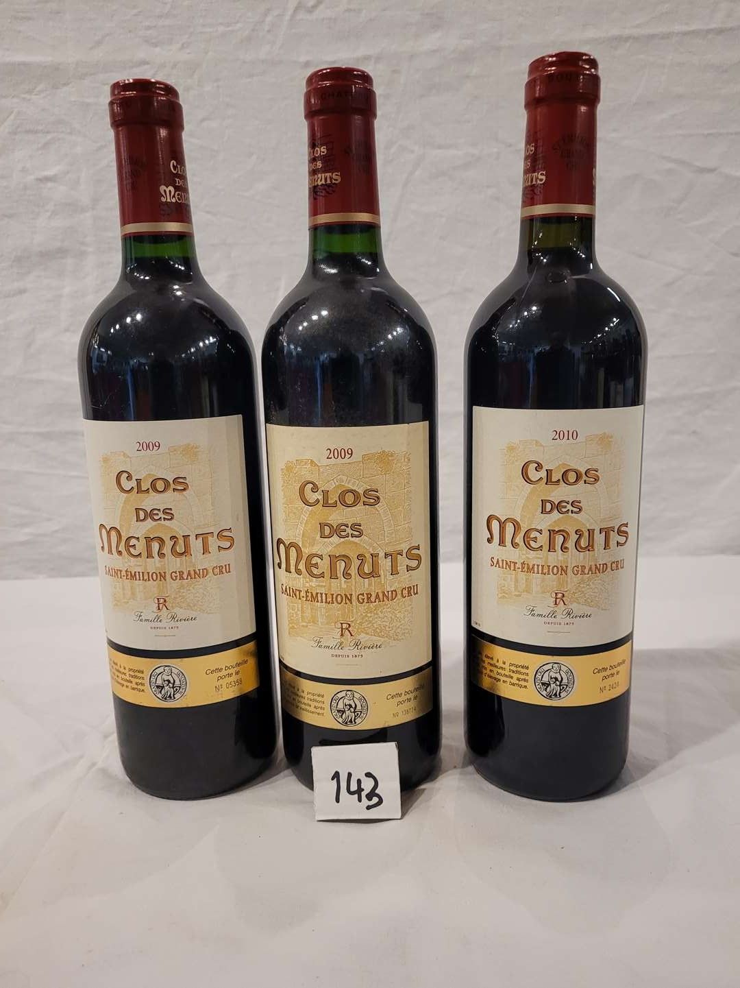 3 bottles CLOS DES MENUTS SAINT EMILION GRAND CRU 2 bottles from 2009 and 1 bottle from 2010.