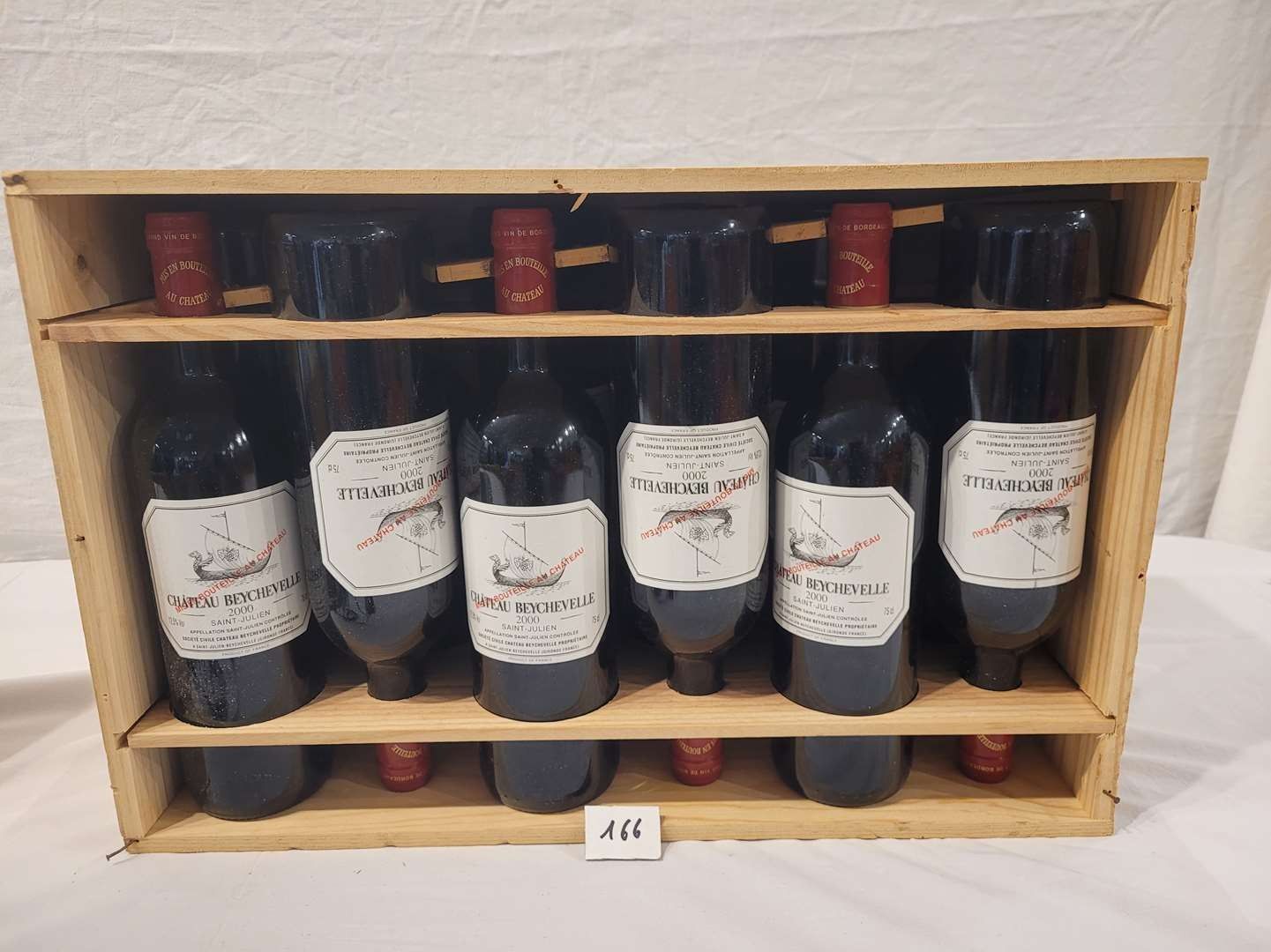 12 bottles CHÂTEAU BEYCHEVELLE 2000 GCC SAINT JULIEN. In its original wooden case. Very nice presentation.