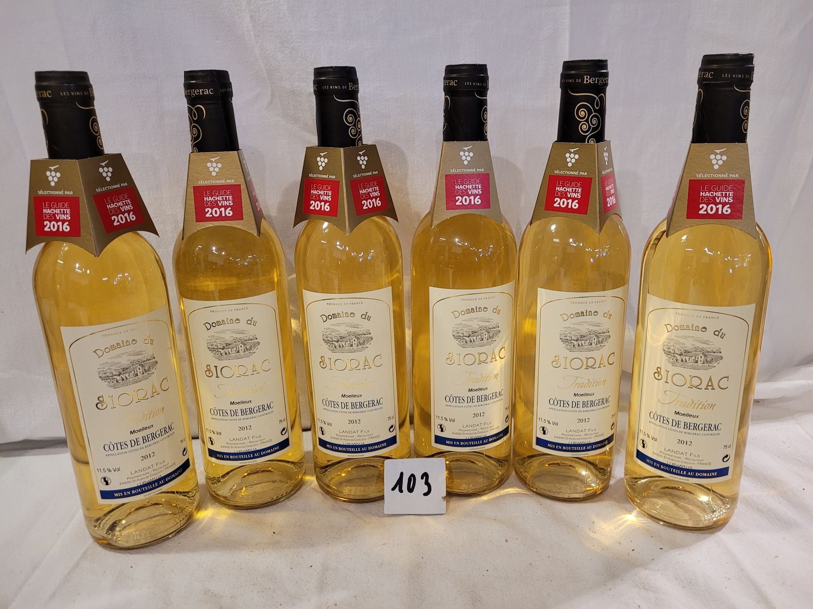 6 bottles DOMAINE DU SIORAC 2012 COTES DE BERGERAC MOELLEUX. Beautiful presentation.