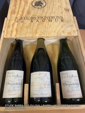 Wooden box of 3 bottles SAUMUR including 1 bottle MANOIR DE …