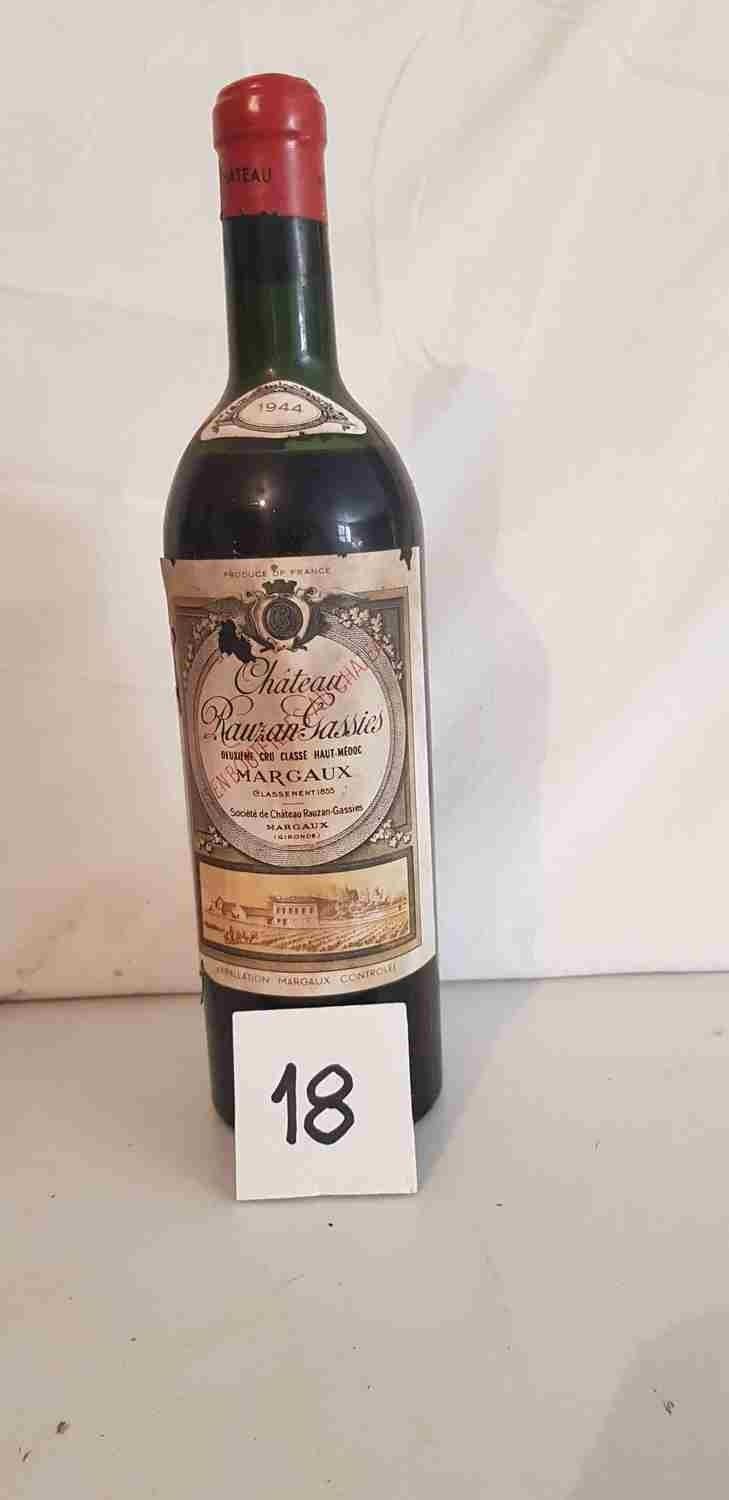 1 bottle château RAUZAN GASSIES 1944 MARGAUX 2°GCC. Label slightly torn, mid-shoulder.