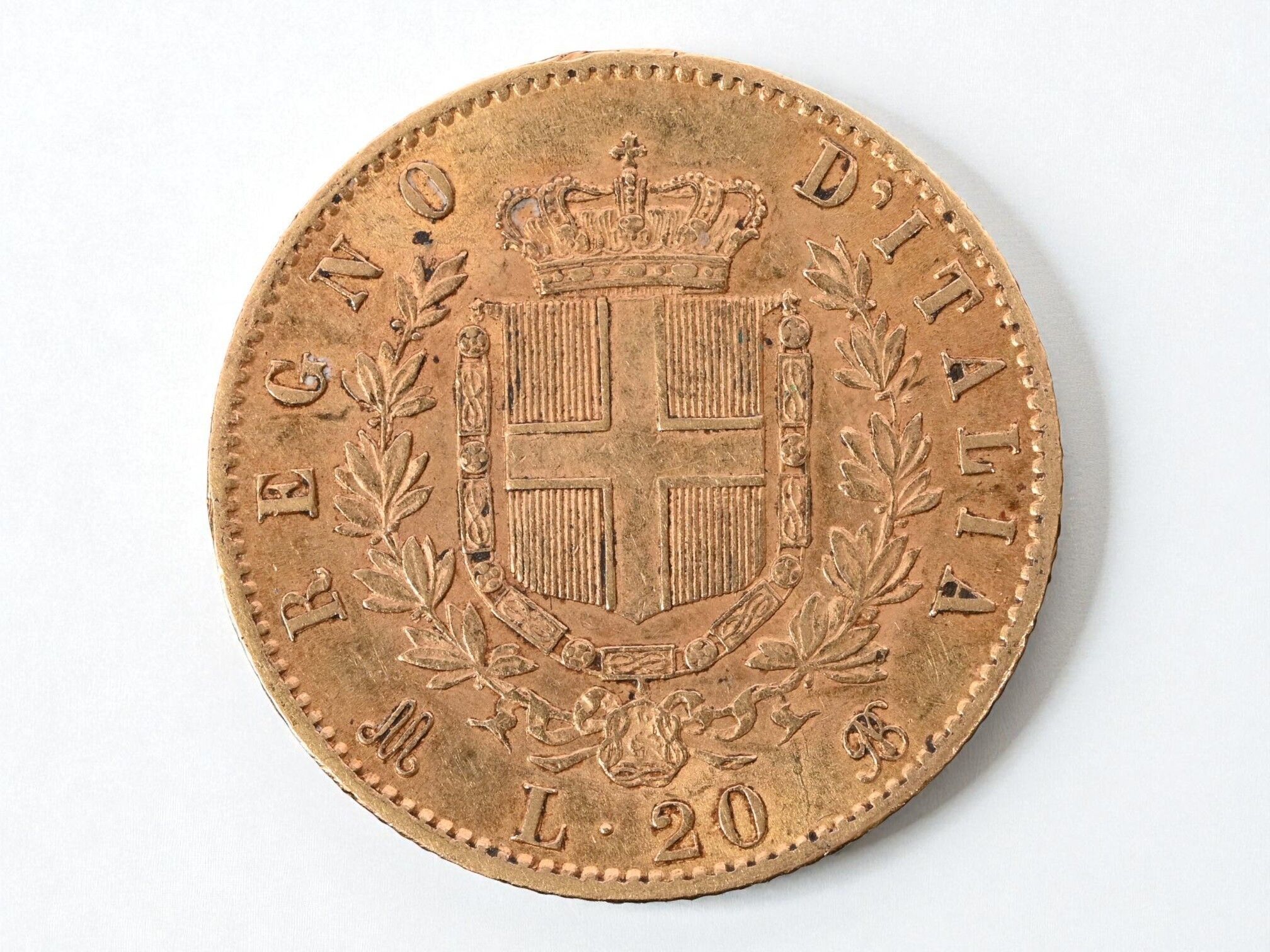 Premium 20 lira gold coin Vittorio Emmanuele II 1873 (Worn)